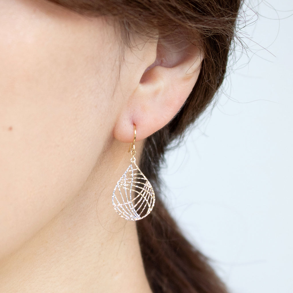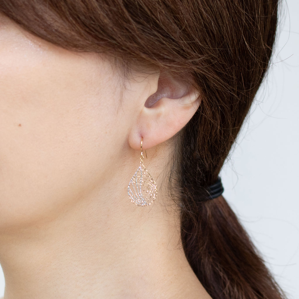 表面全体にキラキラと輝くテクスチャーを施してあり、耳元で軽やかに揺れるたびに、キラキラとした輝きを放ちます。