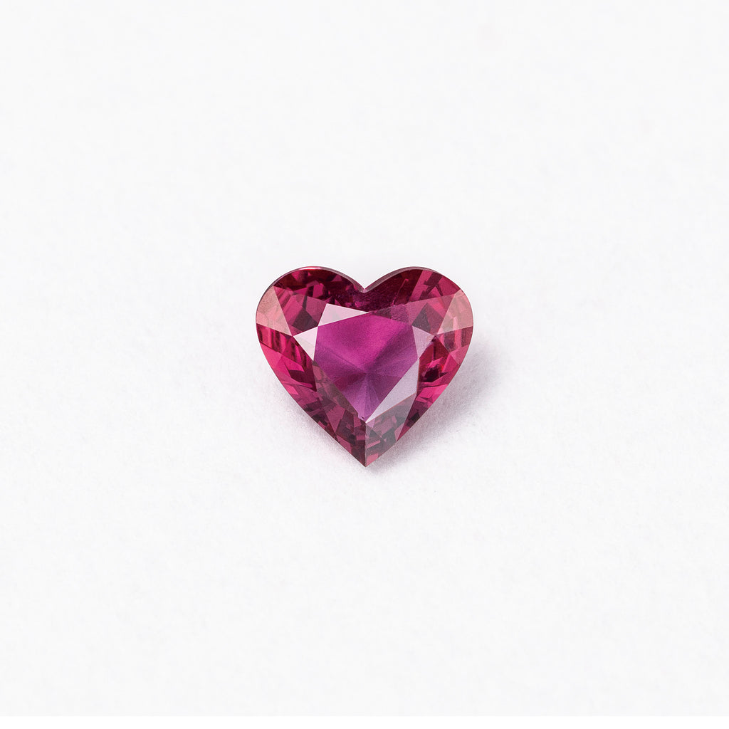 愛らしいハートシェイプでいつまで見ていても飽きない美しいルビーです。