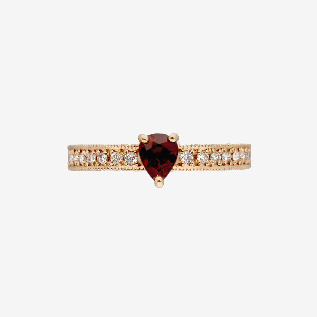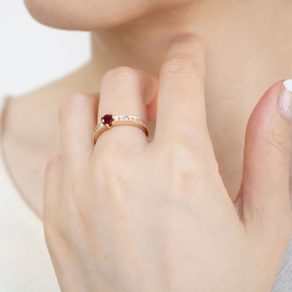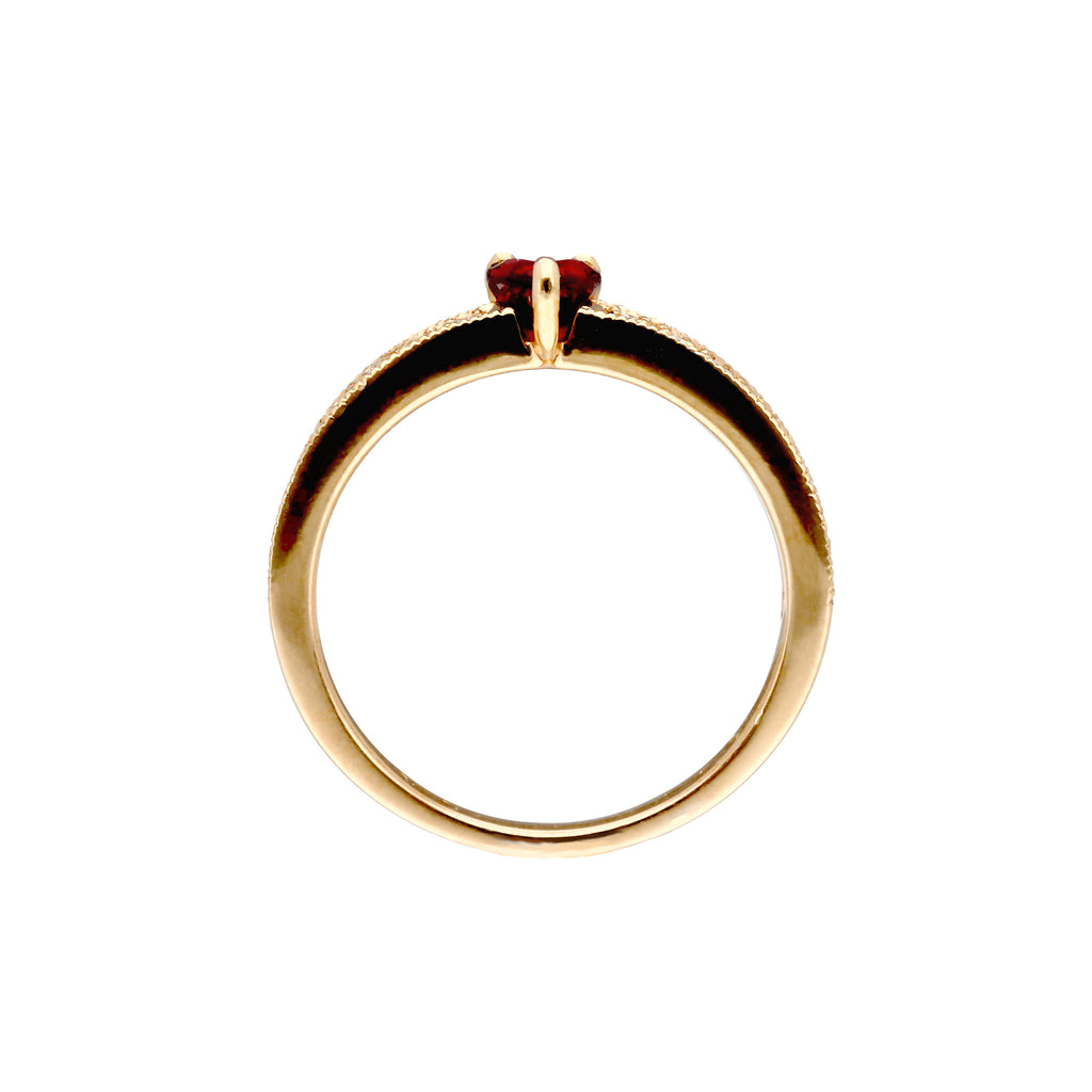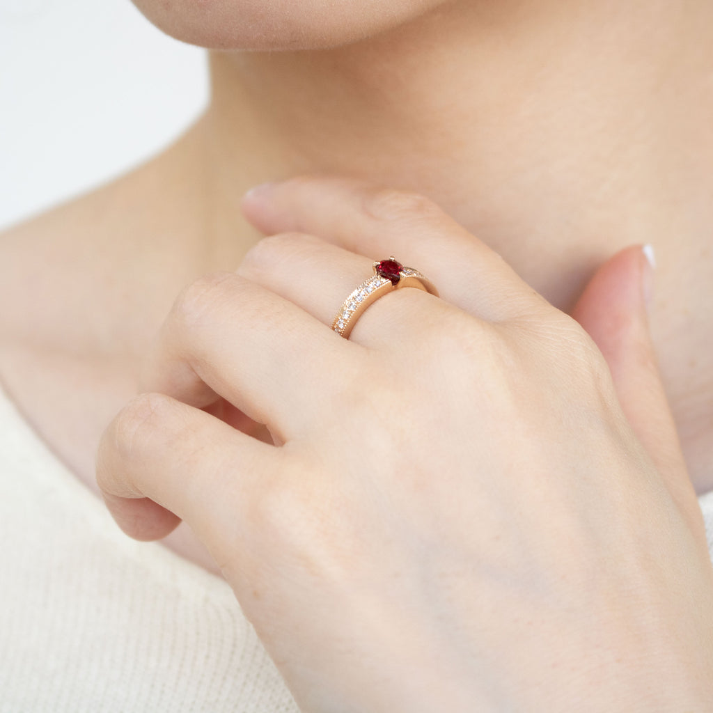 ルビーはその硬さと血液を連想させる鮮やかな赤い色から、お守りとして、また王侯貴族の富の証として、古くから大切にされてきた伝統のある宝石です。