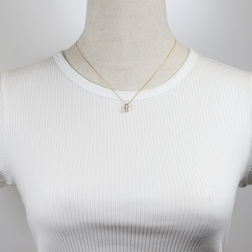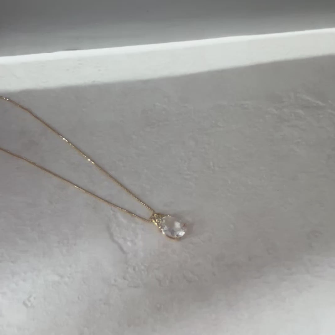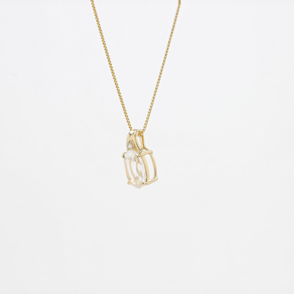 チェーンを通すバチカンにキラッと輝くメレダイヤを1石留めたシンプルなデザインです。ハイアライトオパールの淡いミントカラーが引き立つイエローゴールド製の枠にセットしました。