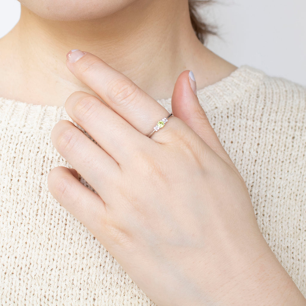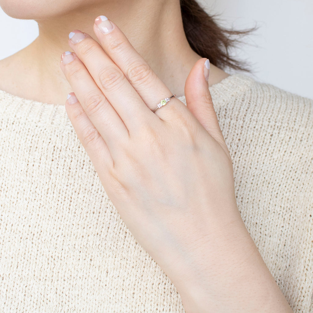スフェーンの左右にはメレダイヤを4石ずつ小花のように留めました。