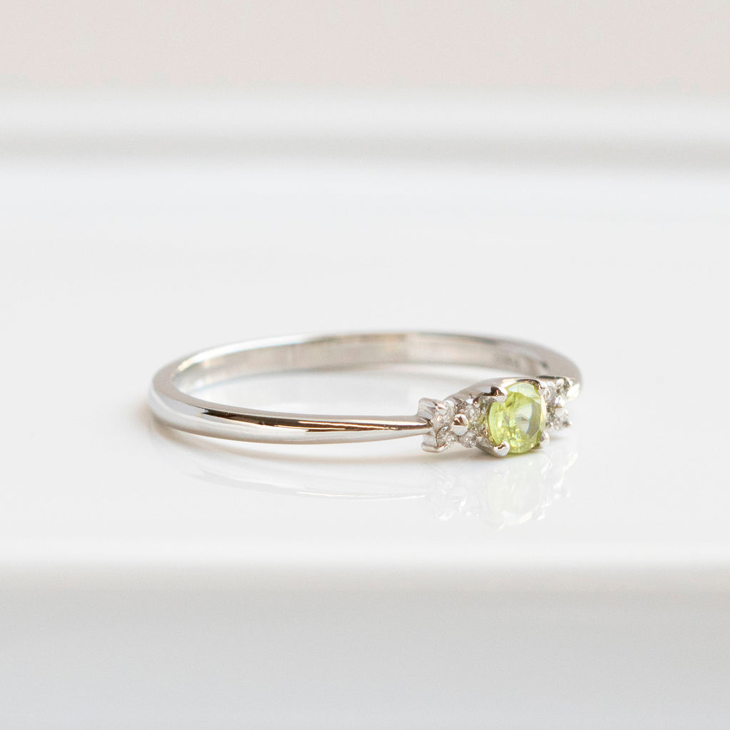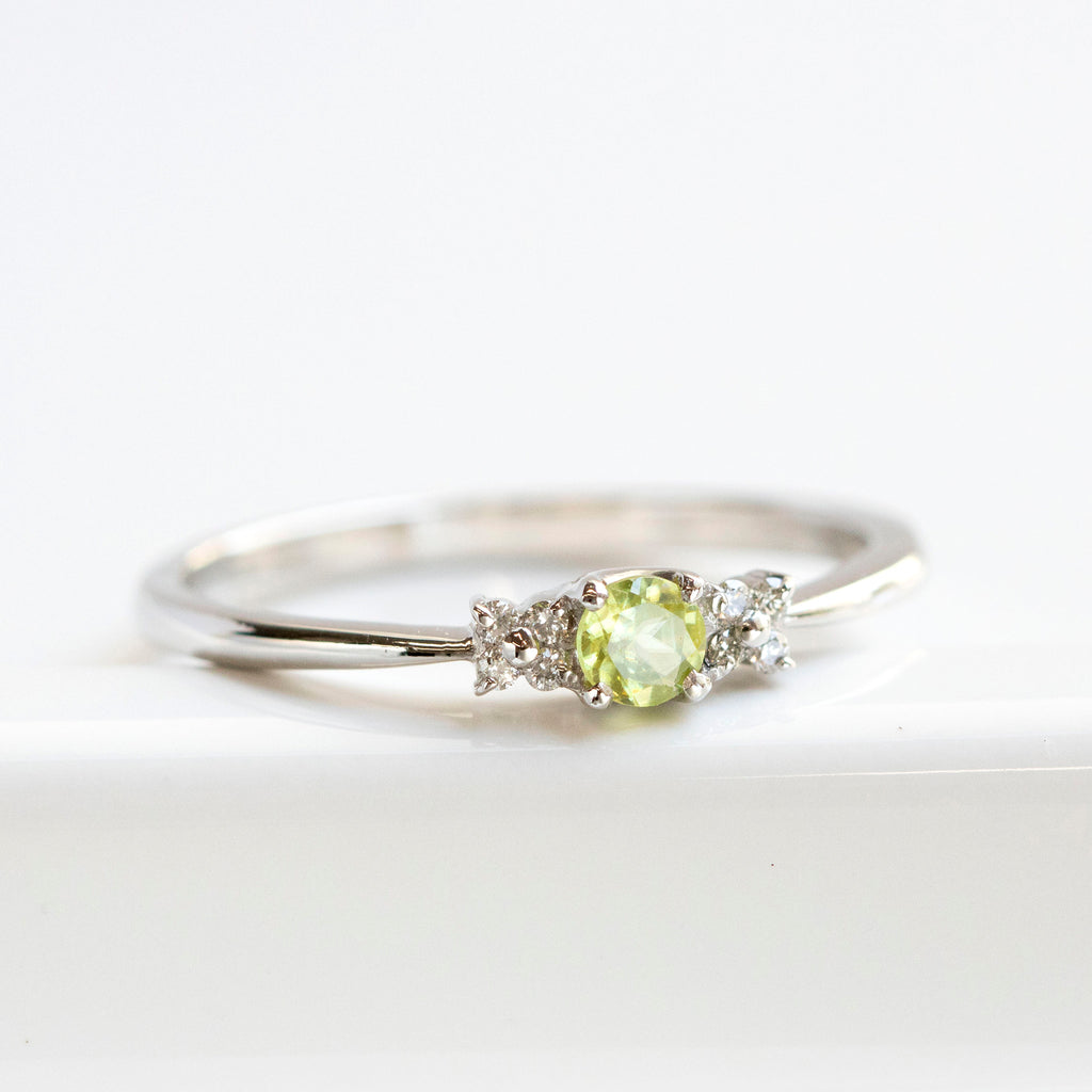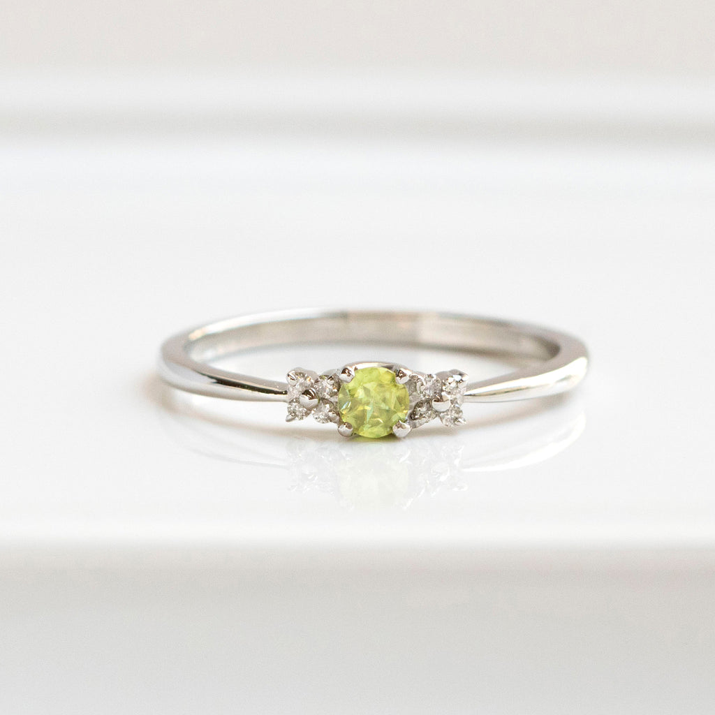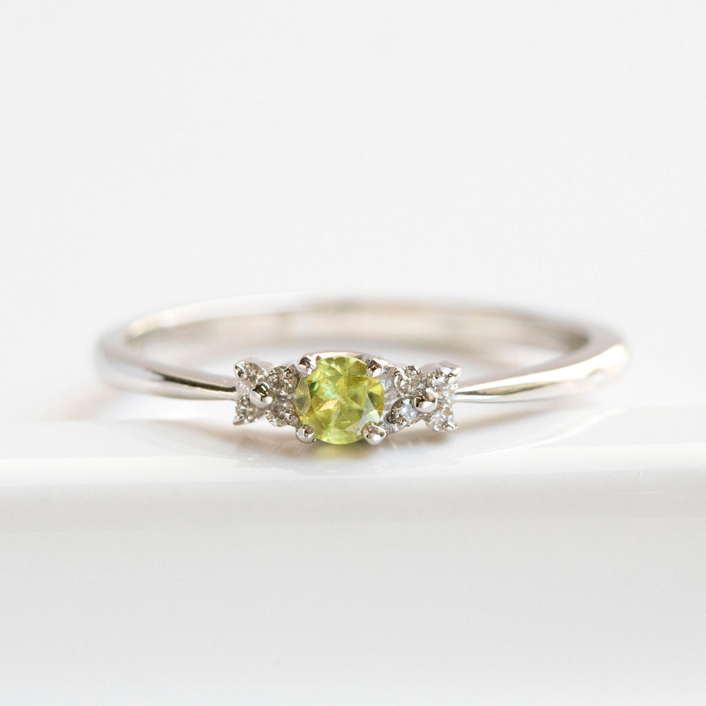0.12ctのラウンドカットのスフェーンを小ぶりなリングに仕立てました。