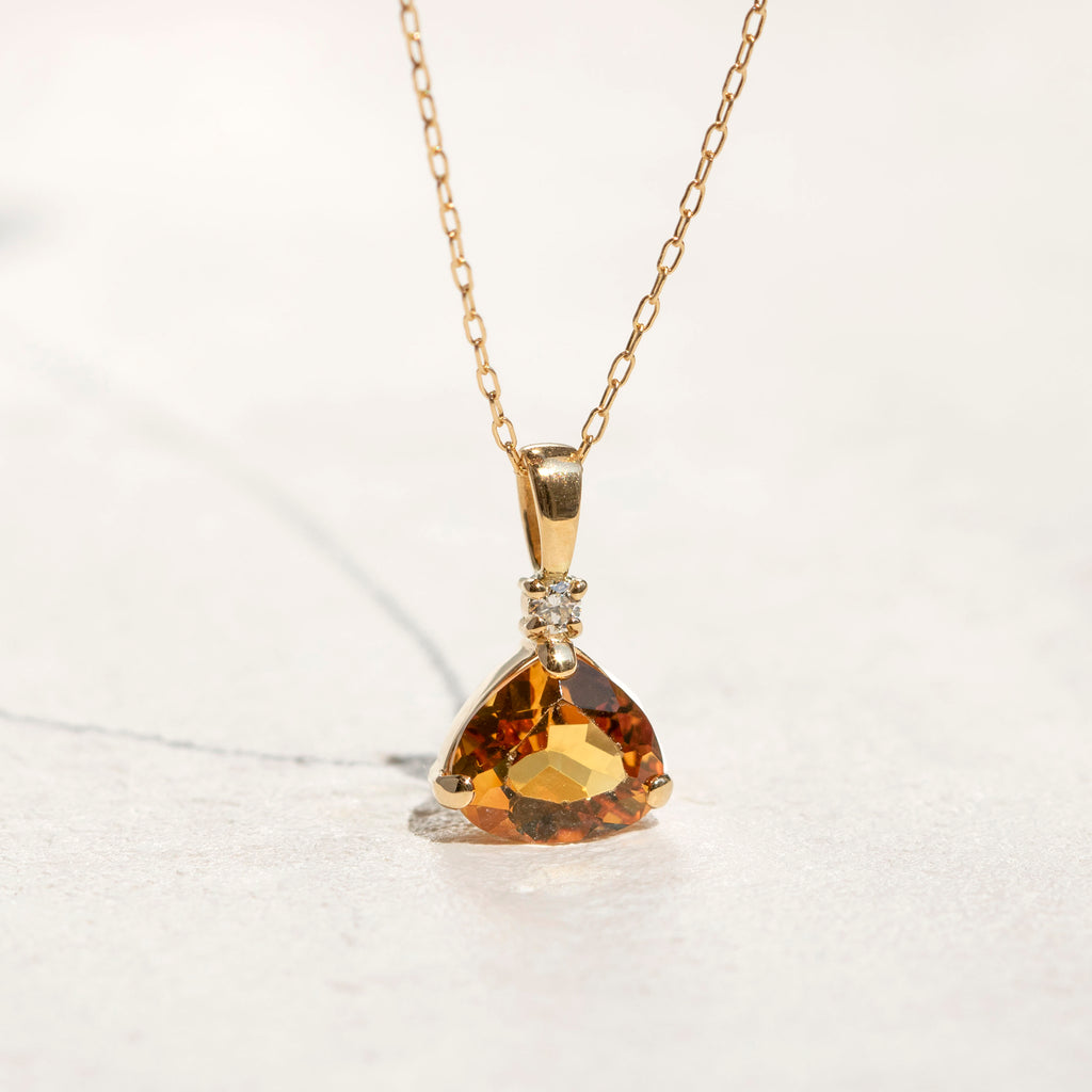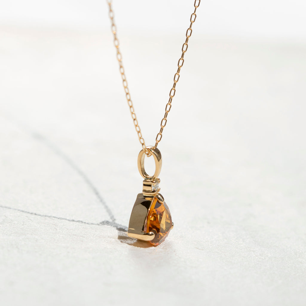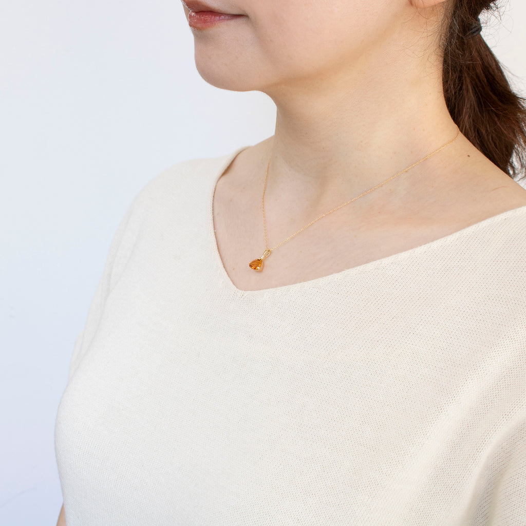 ユニークなシトリンの形を活かしたシンプルなデザインのネックレスです。シトリンの上に1石留めたメレダイヤがキラッと輝いてアクセントになっています。