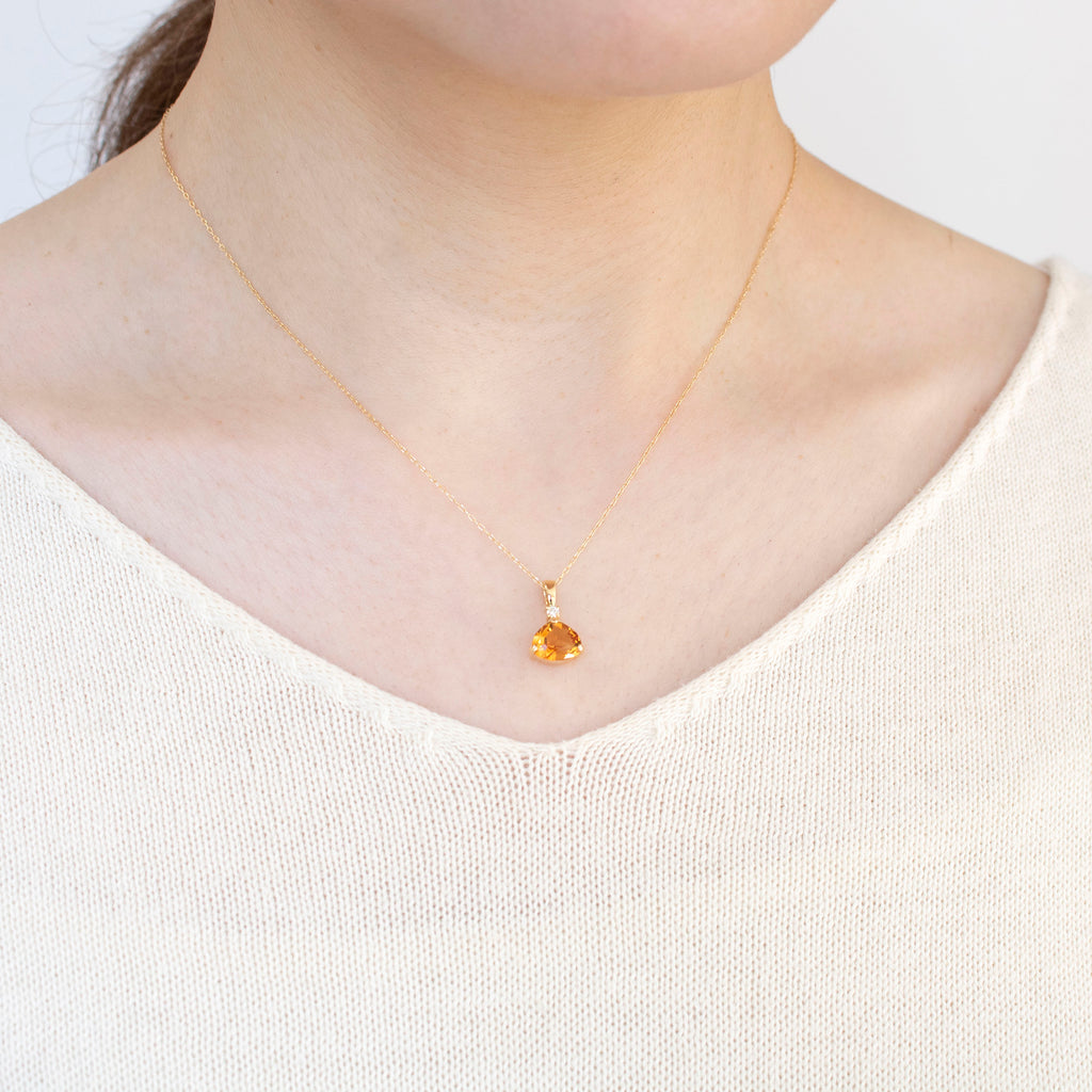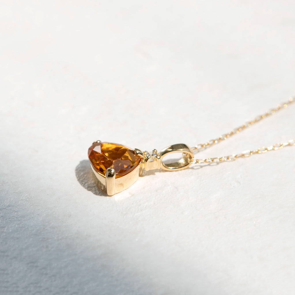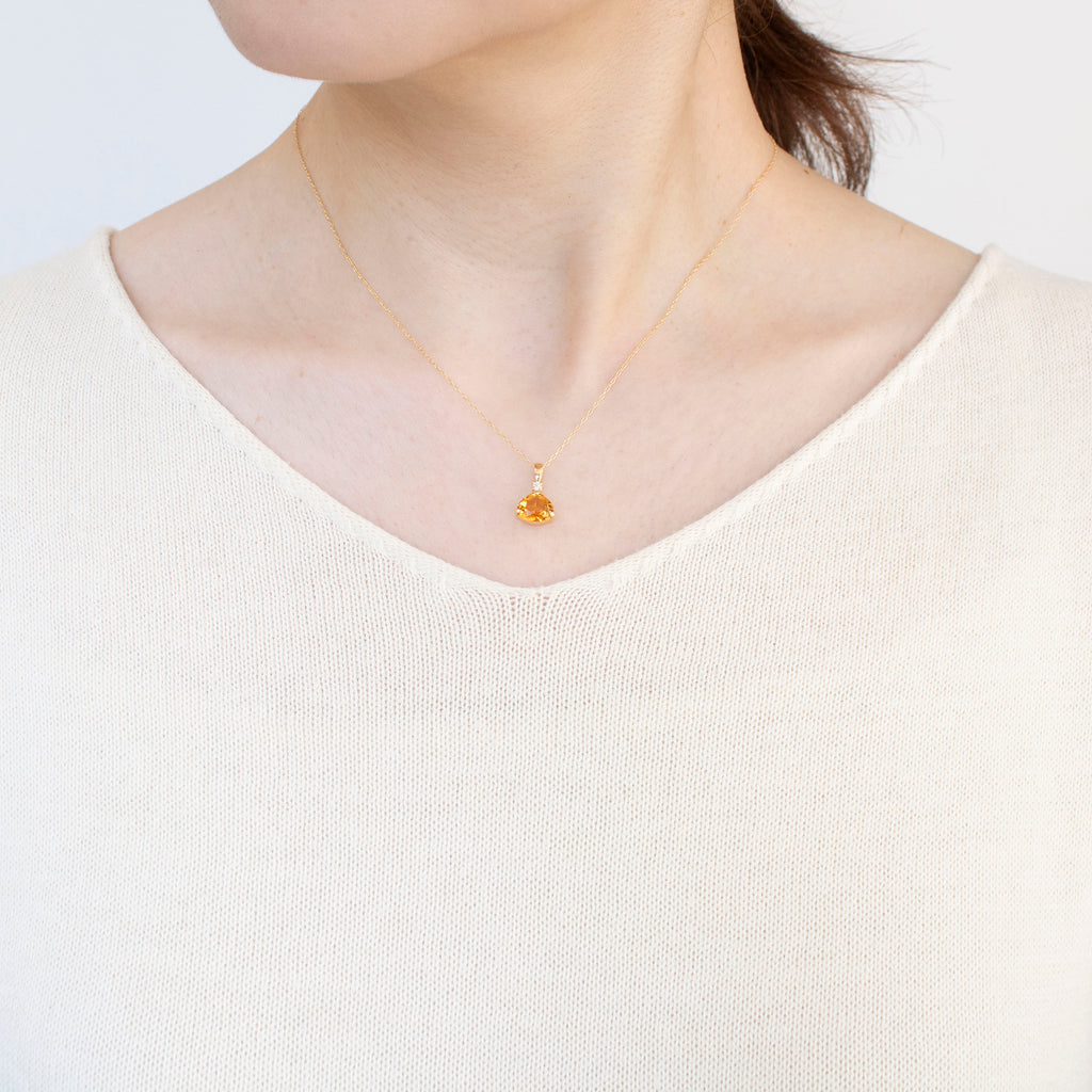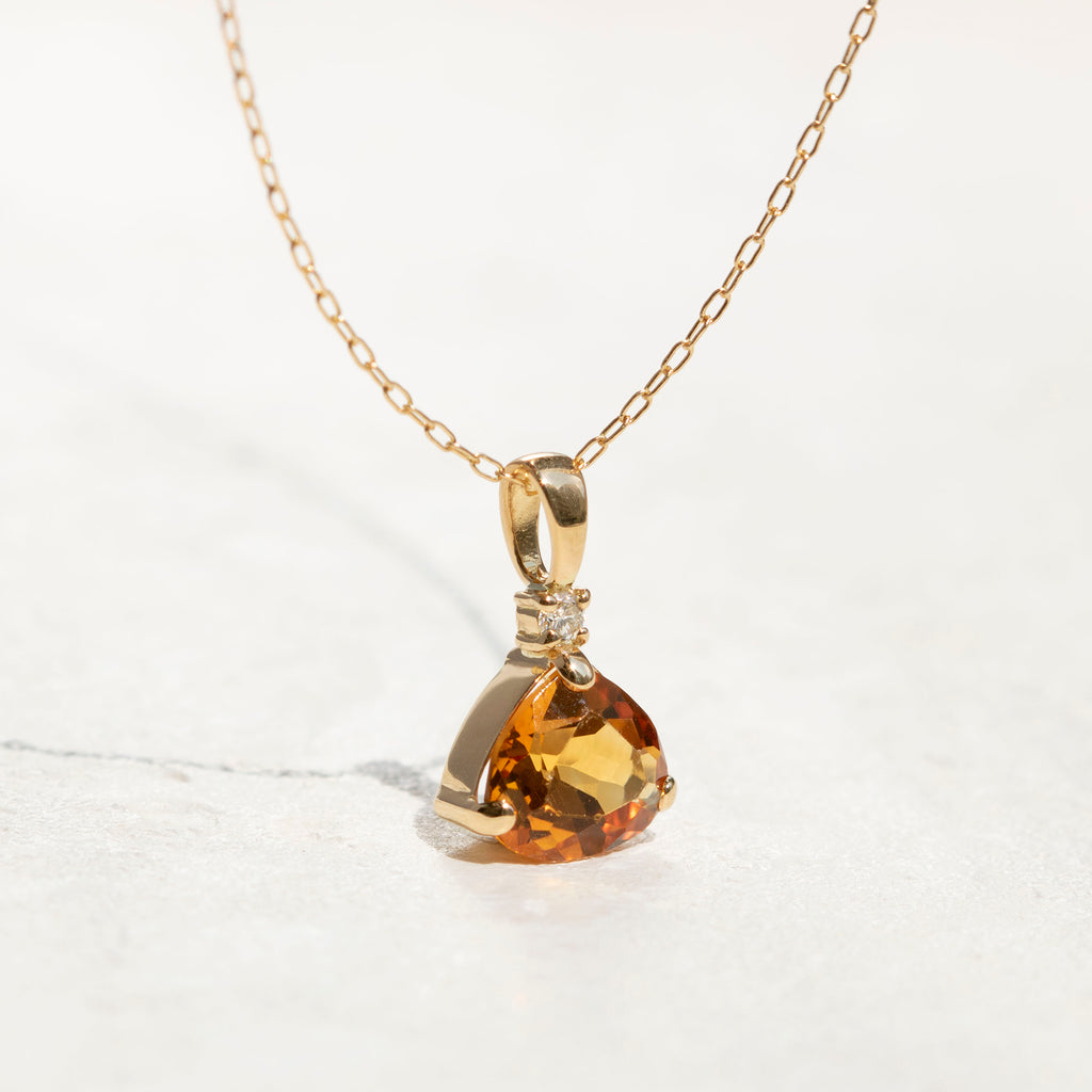 ユニークなシトリンの形を活かしたシンプルなデザインのネックレスです。シトリンの上に1石留めたメレダイヤがキラッと輝いてアクセントになっています。
