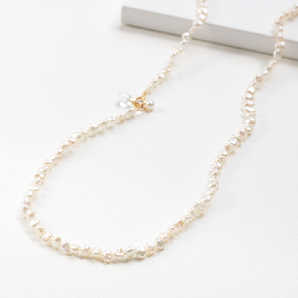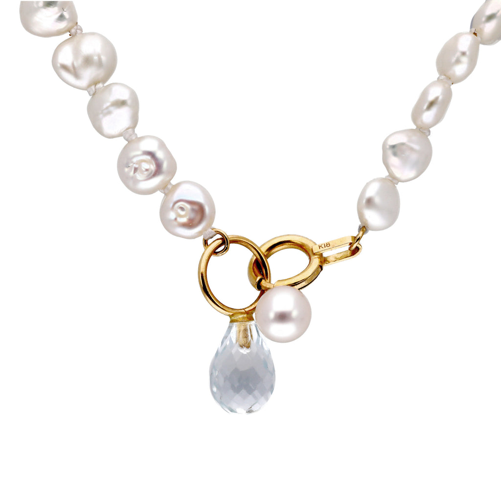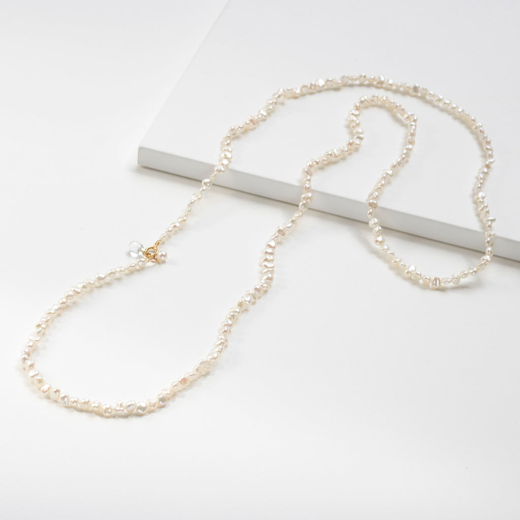 【 K18 ホワイトトパーズ×淡水パール ロングネックレス 】
