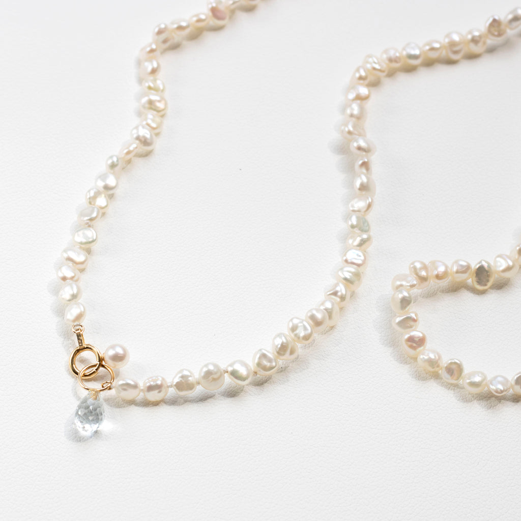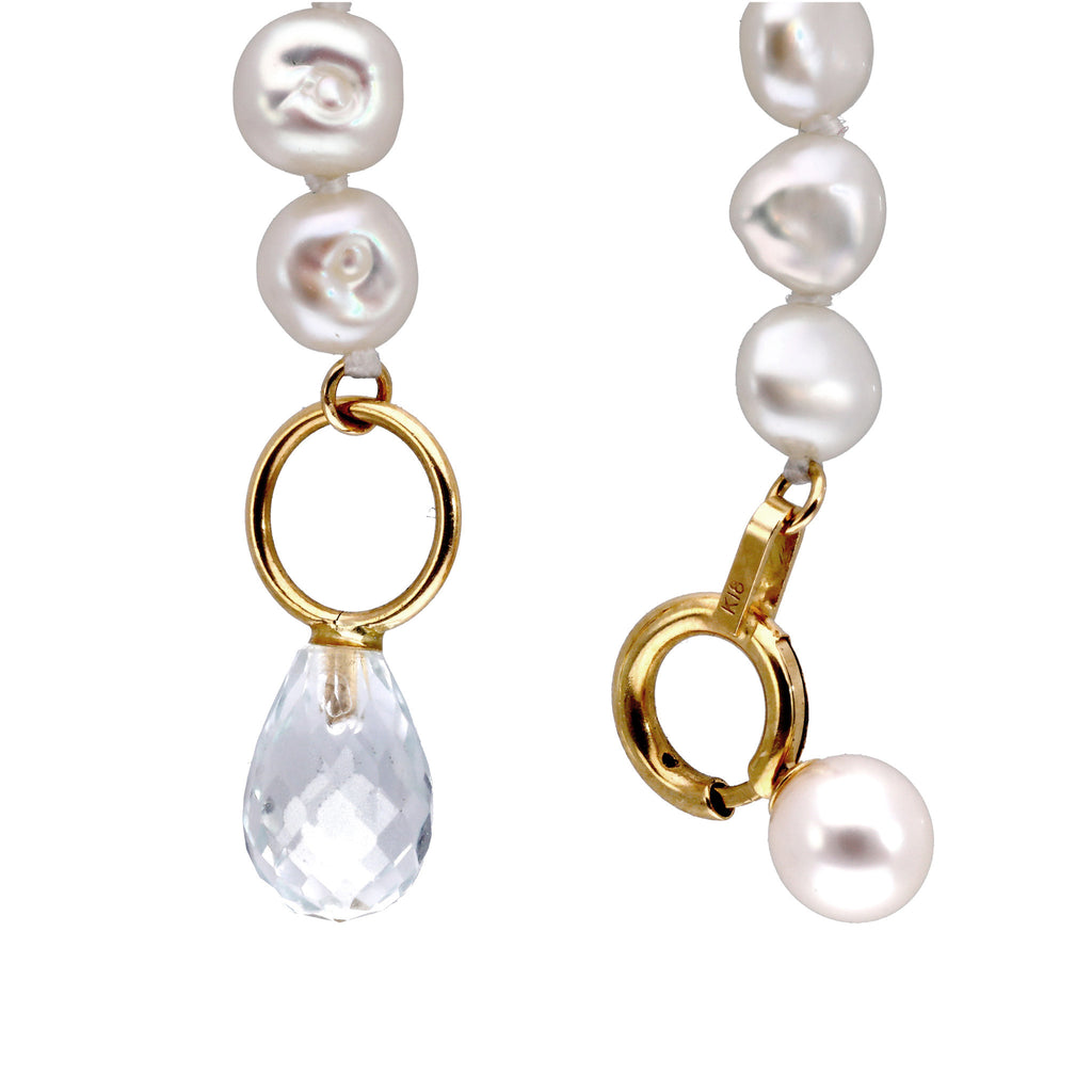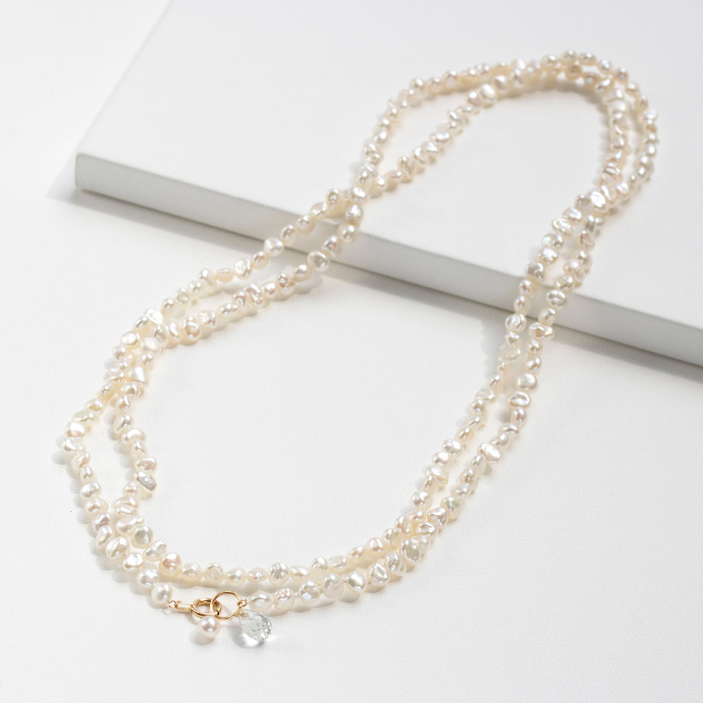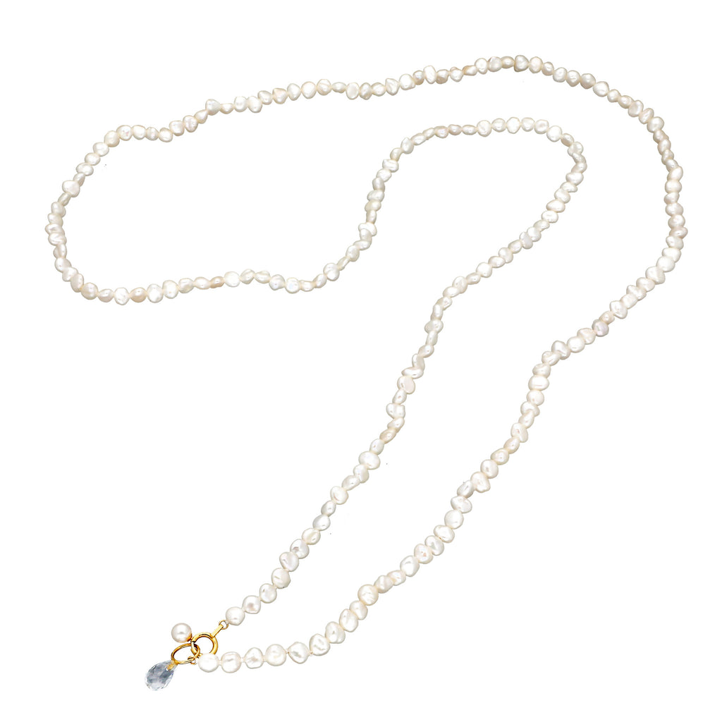 【 K18 ホワイトトパーズ×淡水パール ロングネックレス 】
