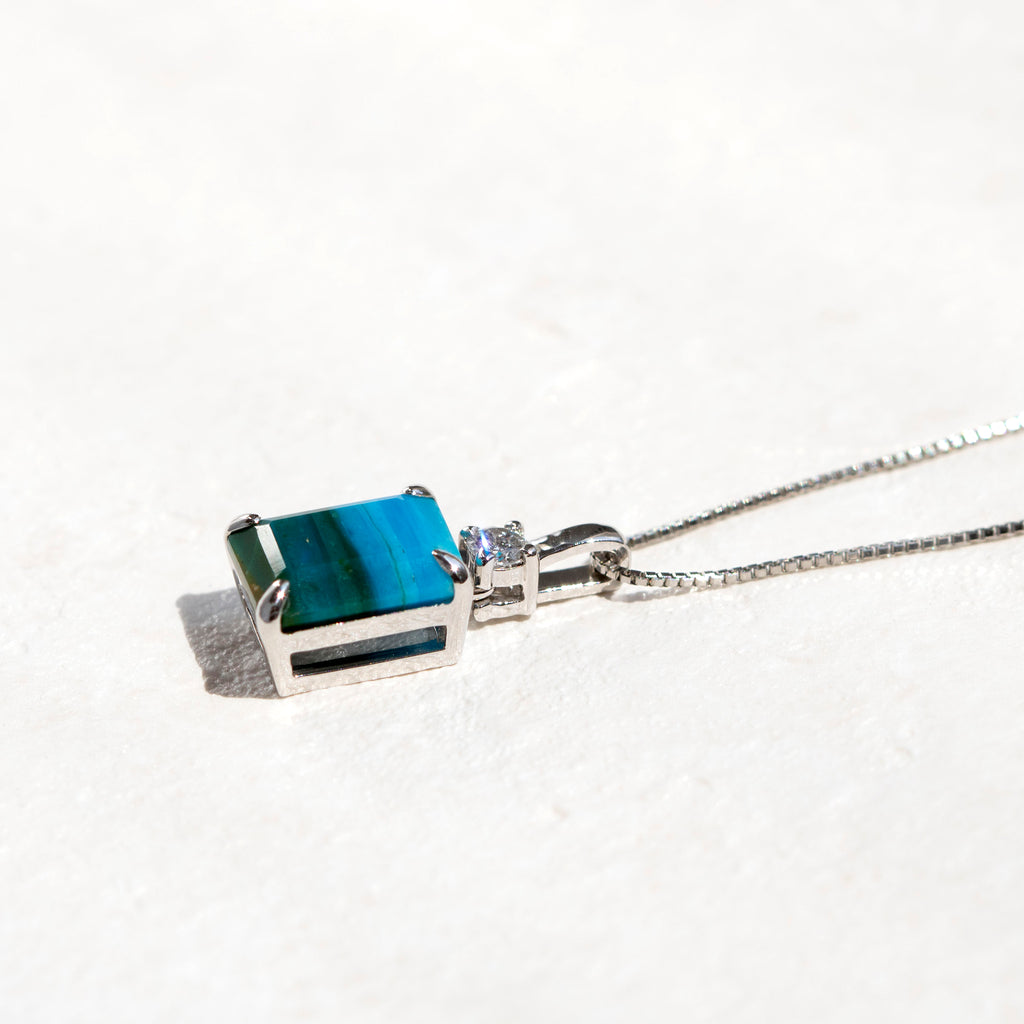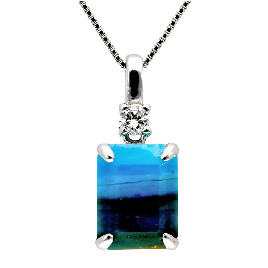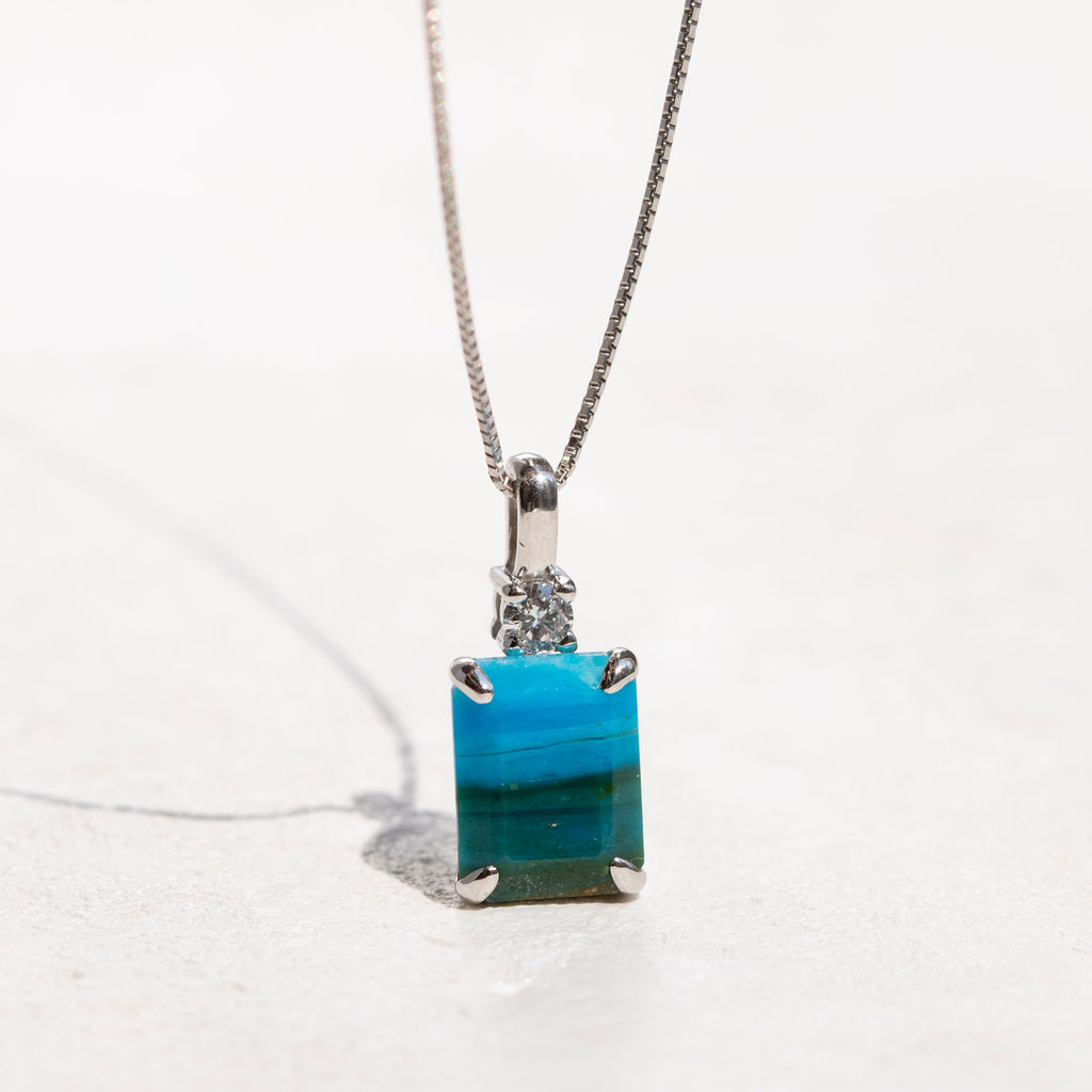色鮮やかなブルーとグリーンに分かれた縞状の層がユニークな「バンデッド・コモンオパール」を使ったネックレスです。