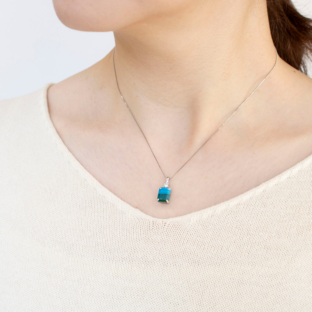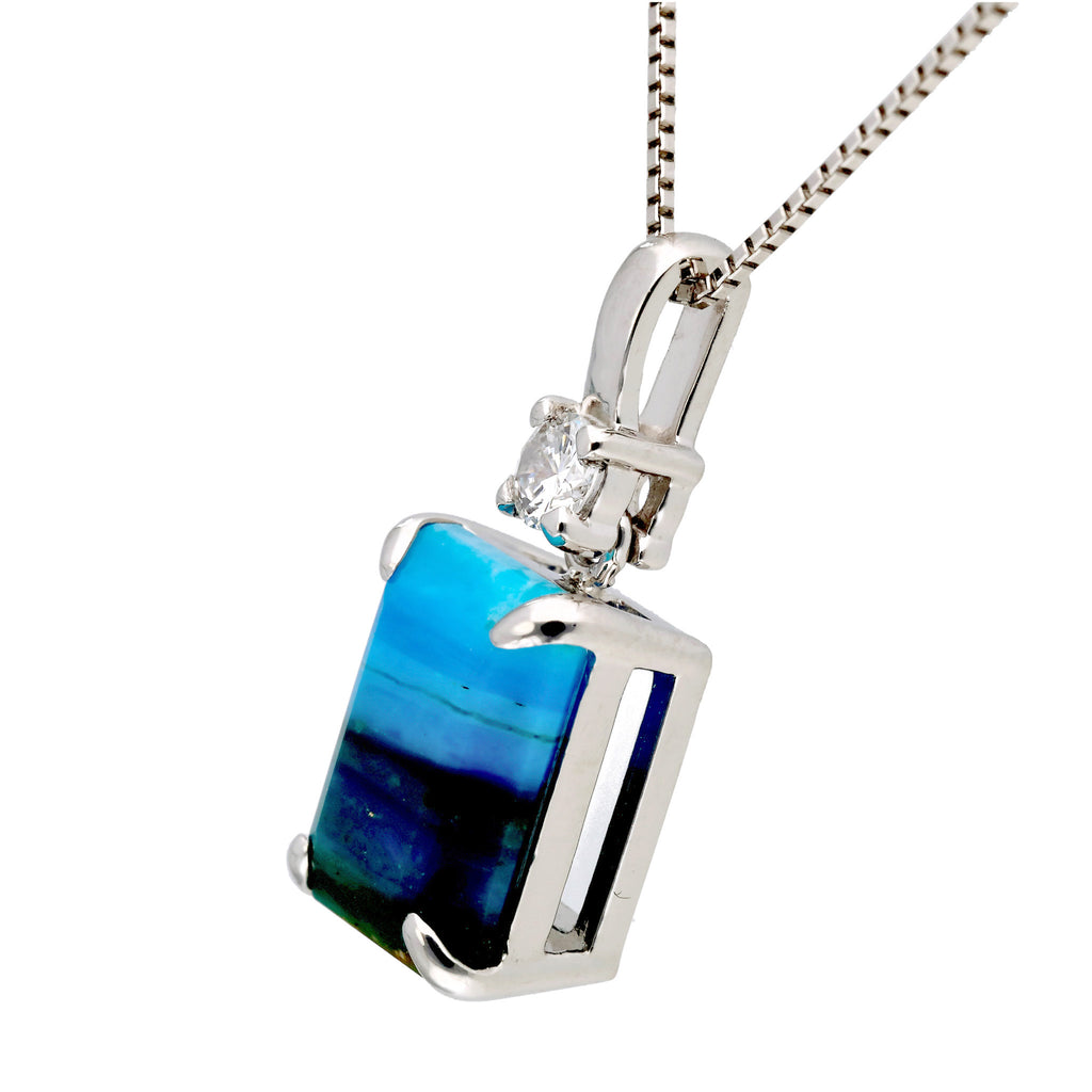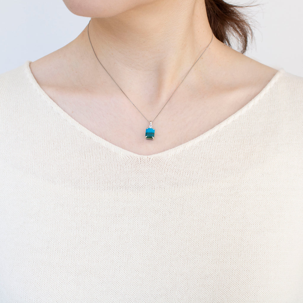 色鮮やかなブルーとグリーンに分かれた縞状の層がユニークな「バンデッド・コモンオパール」を使ったネックレスです。