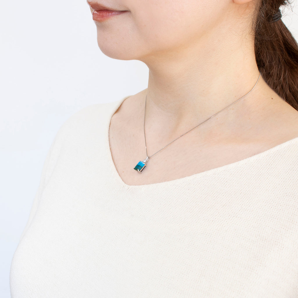 複数の色からなる模様の見え方が風景を思わせることから「ランドスケープ・オパール」と呼ばれるタイプのコモンオパールを厳選して、シンプルなデザインのネックレスに仕立てました。