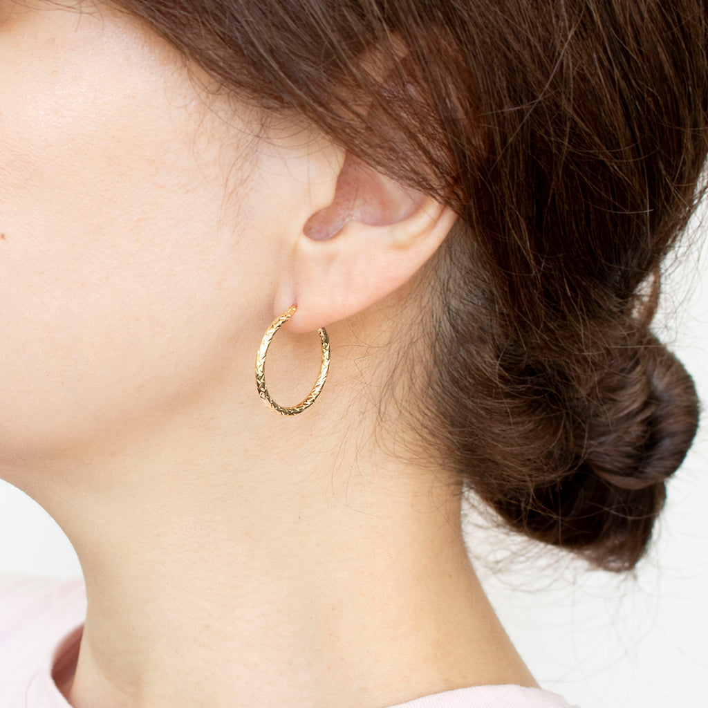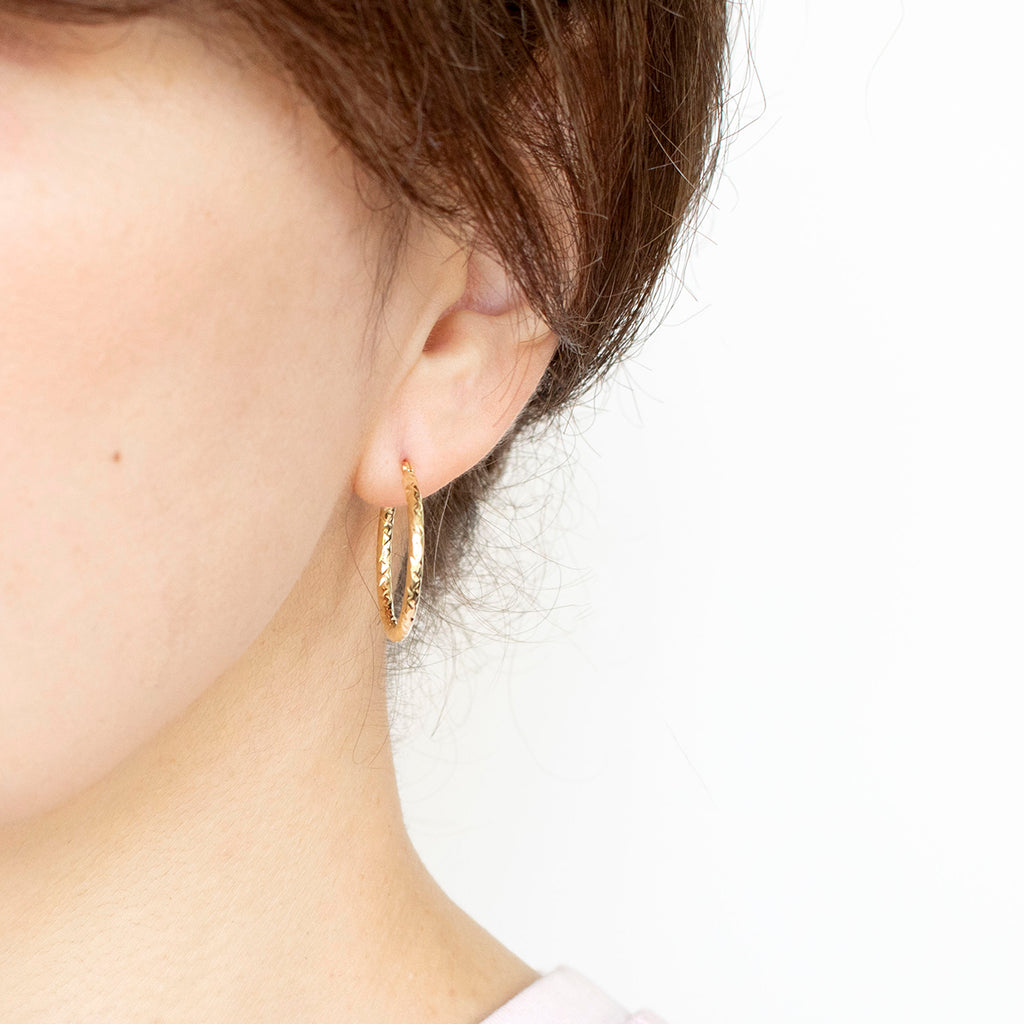 ベーシックな円形のフープタイプデザインです。大きすぎず小さすぎない程よい大きさのフープで、使い勝手がよさそうです。