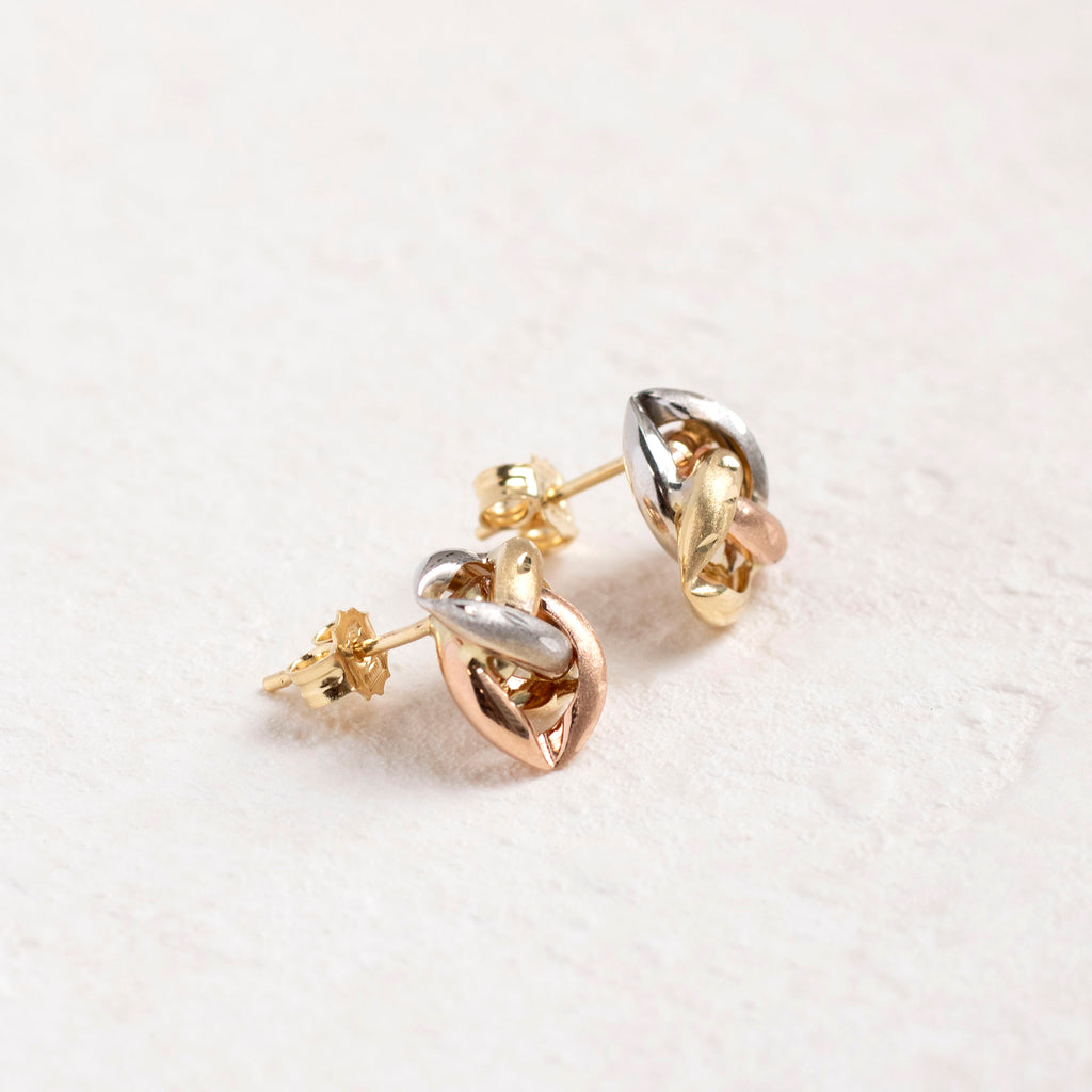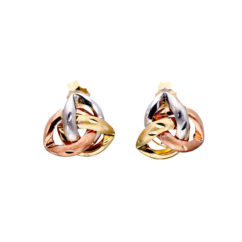 3個のマーキス形のパーツが絡まり合ったような立体的なつくりがユニーク!使い勝手抜群の3カラータイプのピアスです。