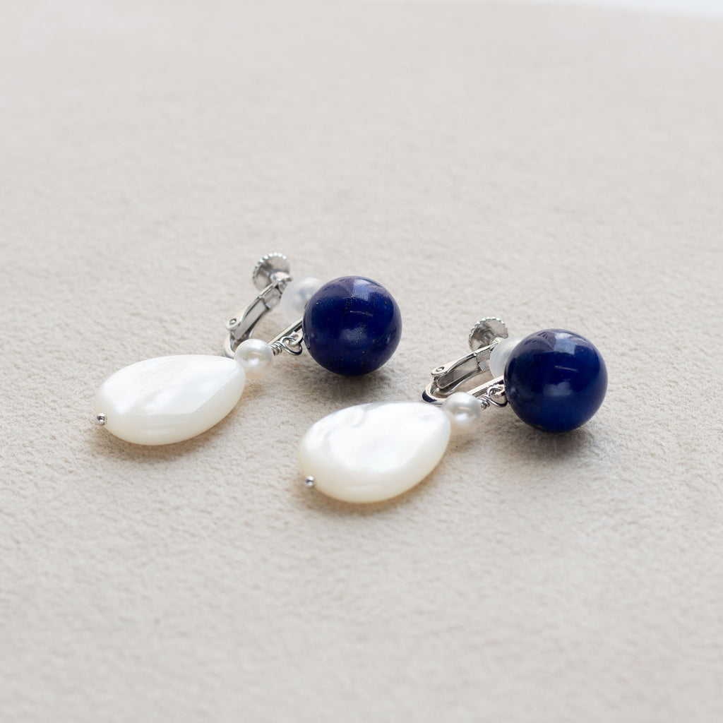 【 シルバー製 ラピスラズリ×アコヤパール×シェル イヤリング 】