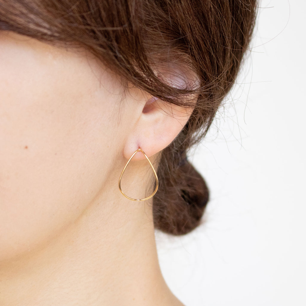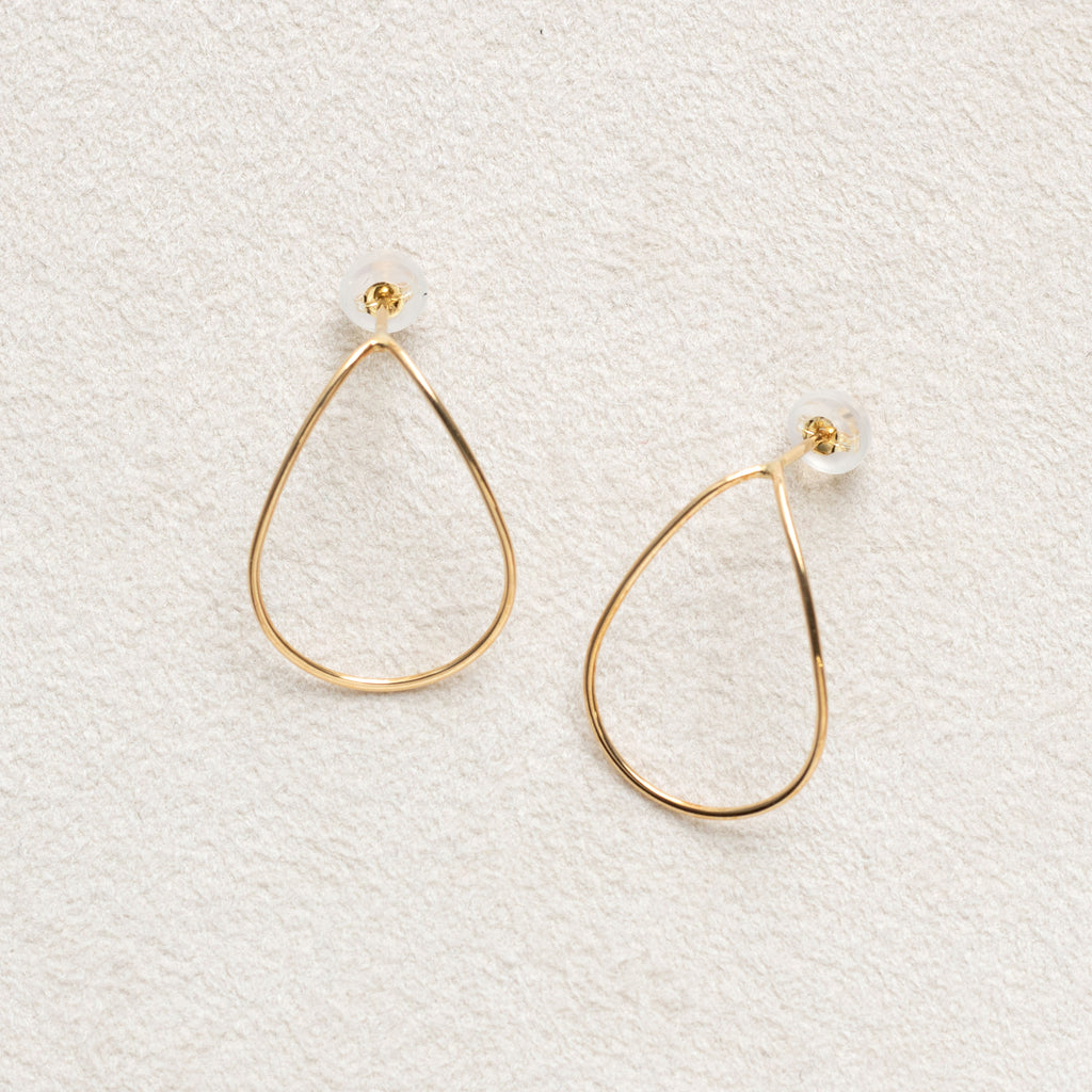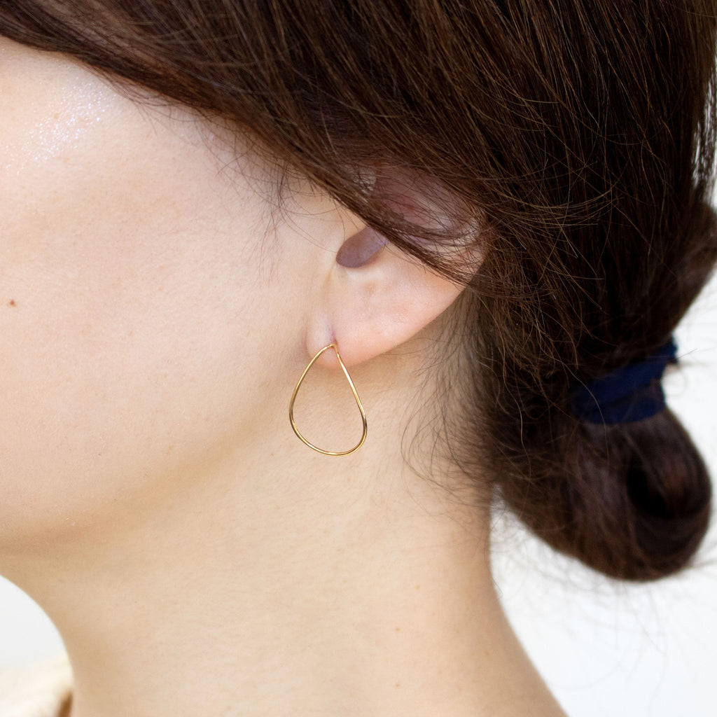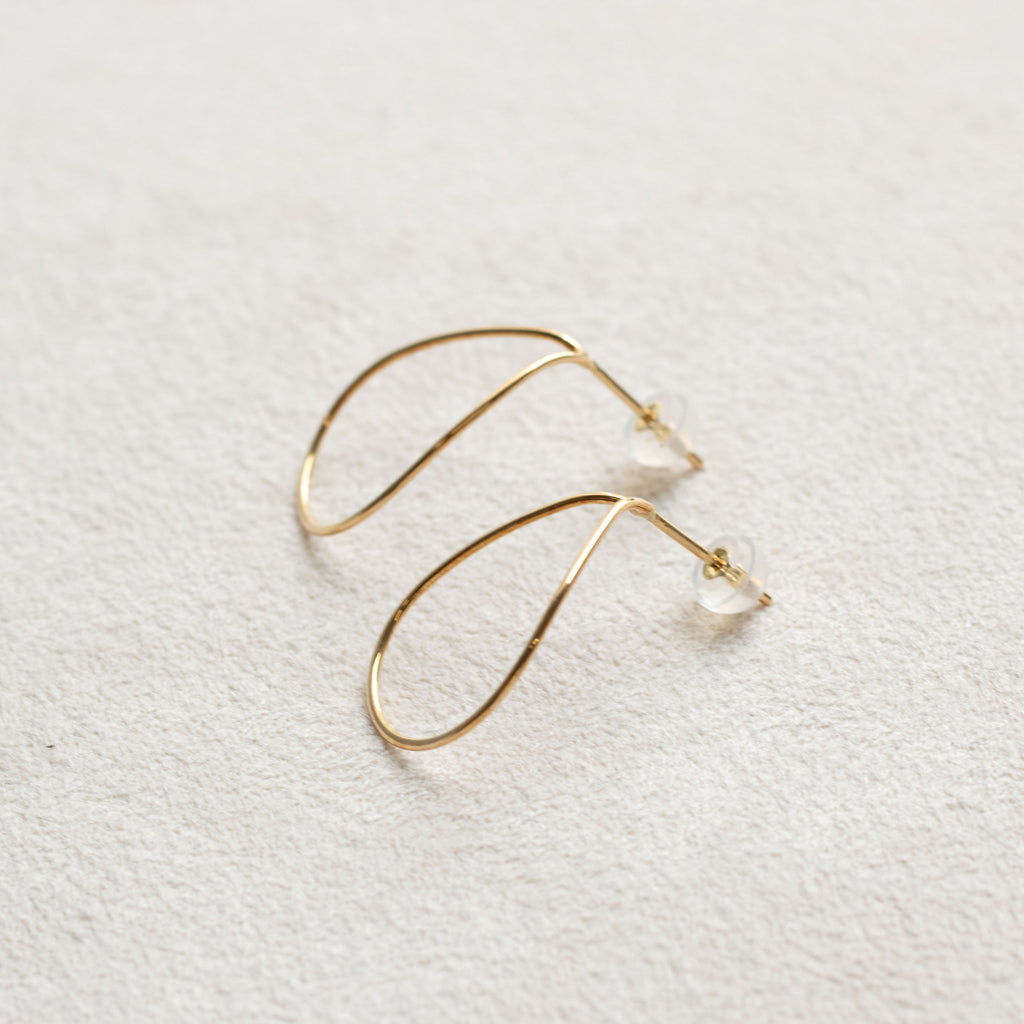 18金の金線で表現した大ぶりな雫形がきれいなピアスです。