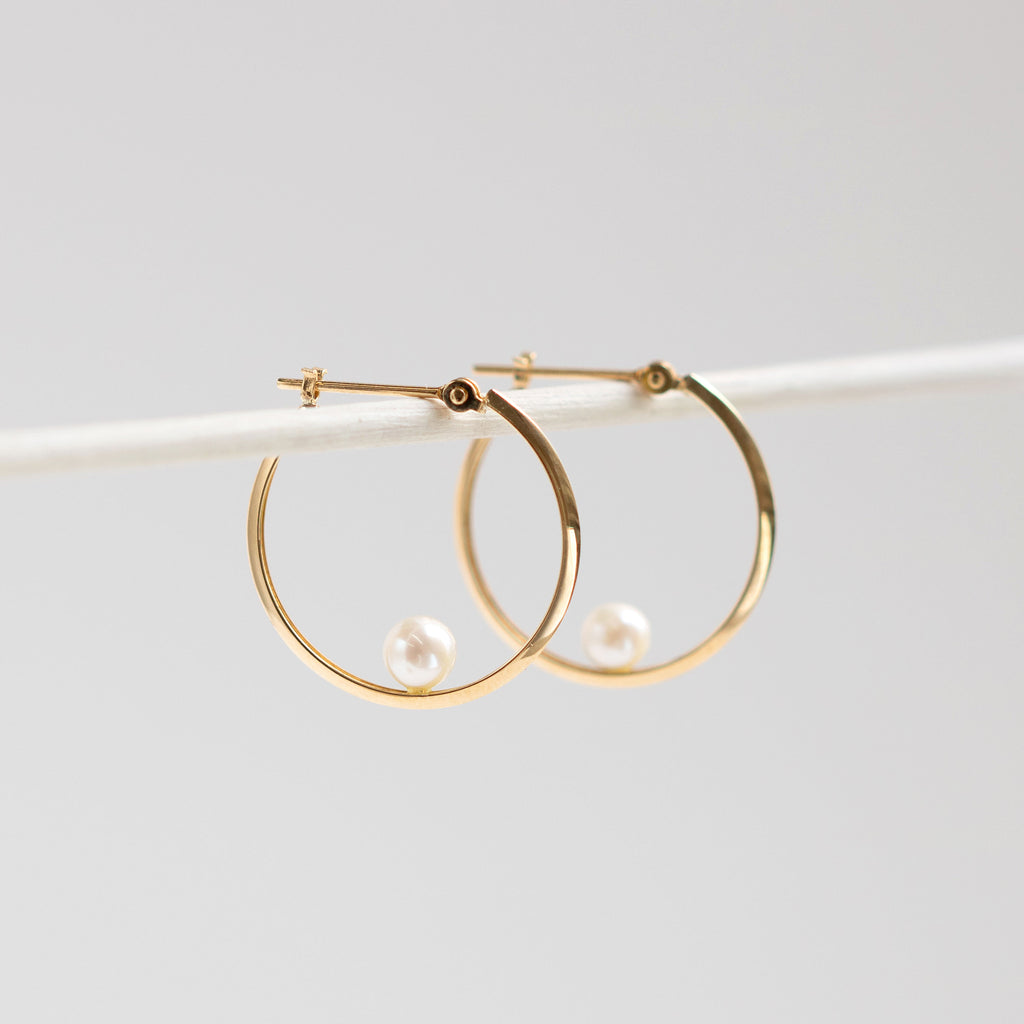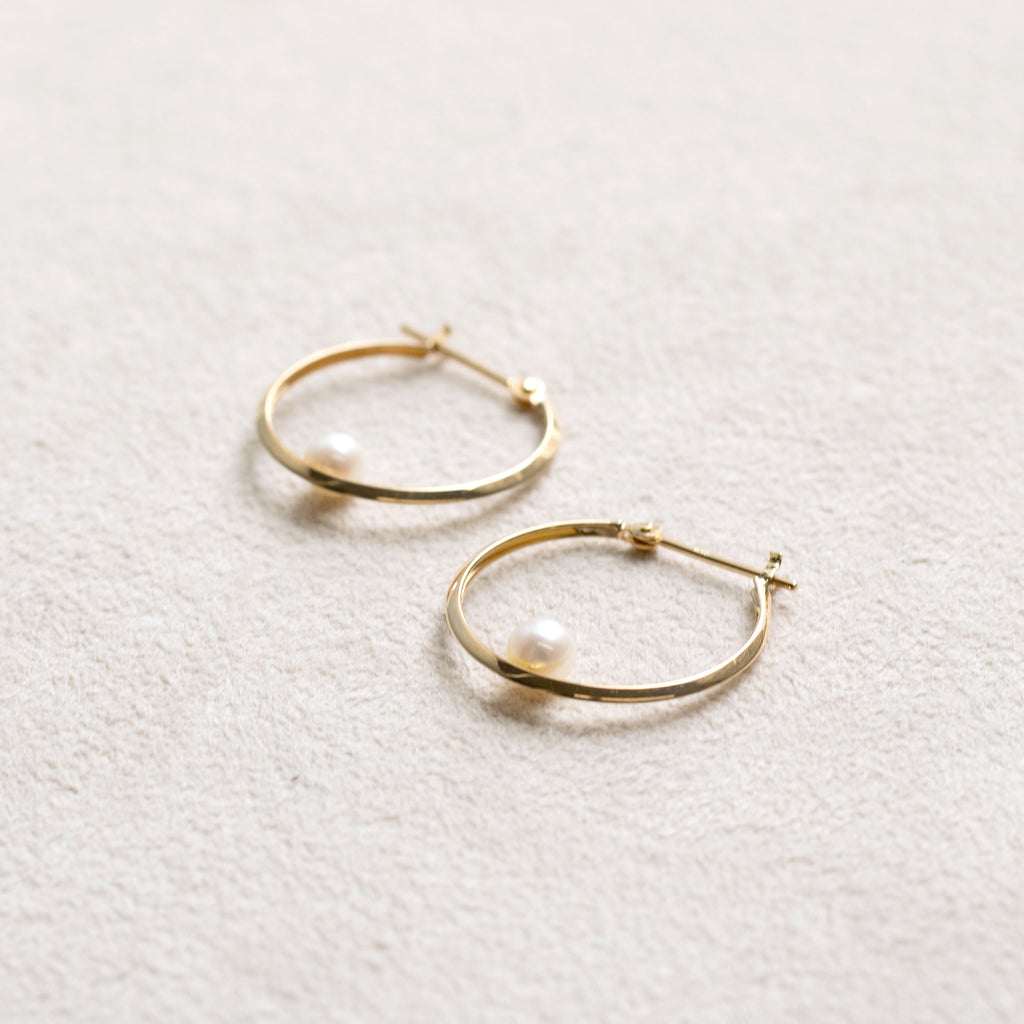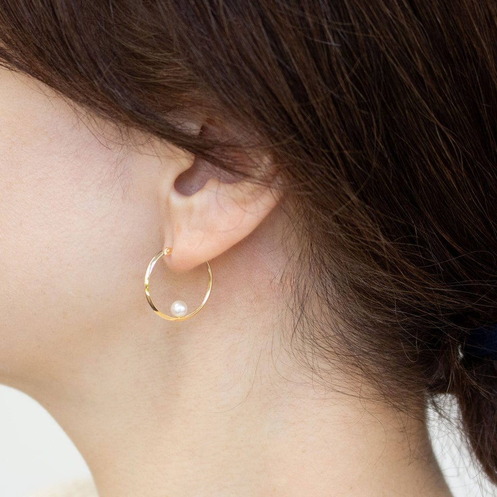 可愛らしいベビーパールを留めたフープタイプのピアスです。