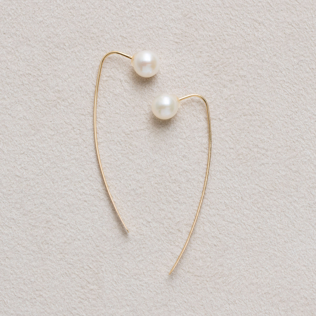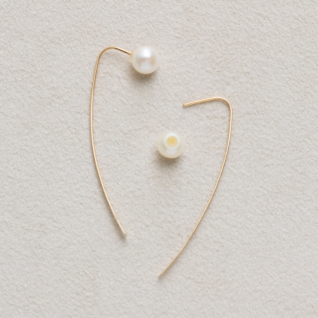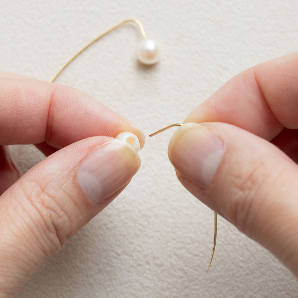淡水パールを耳たぶの前に着けたり、耳たぶの後ろに着けたり、その日の装いに合わせてアレンジをお楽しみください。