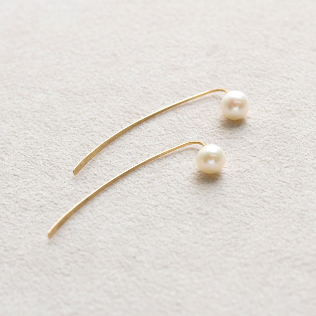 すっと長く伸びた18金のラインが美しい、ミニマルなデザインのピアスです。