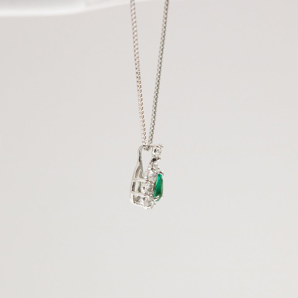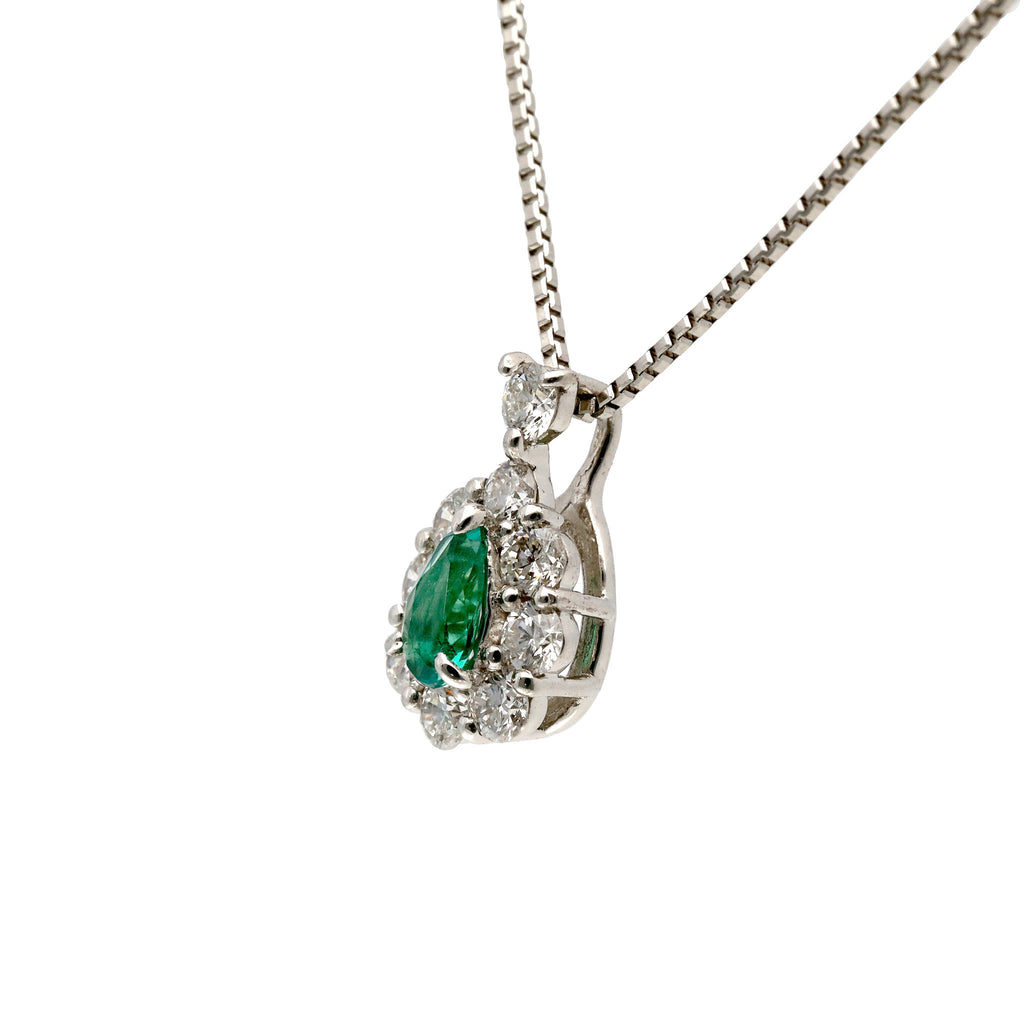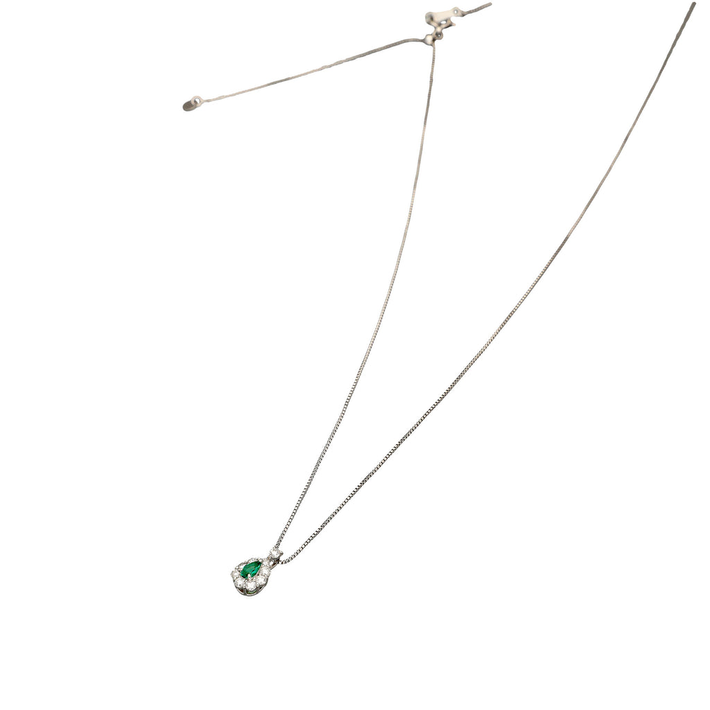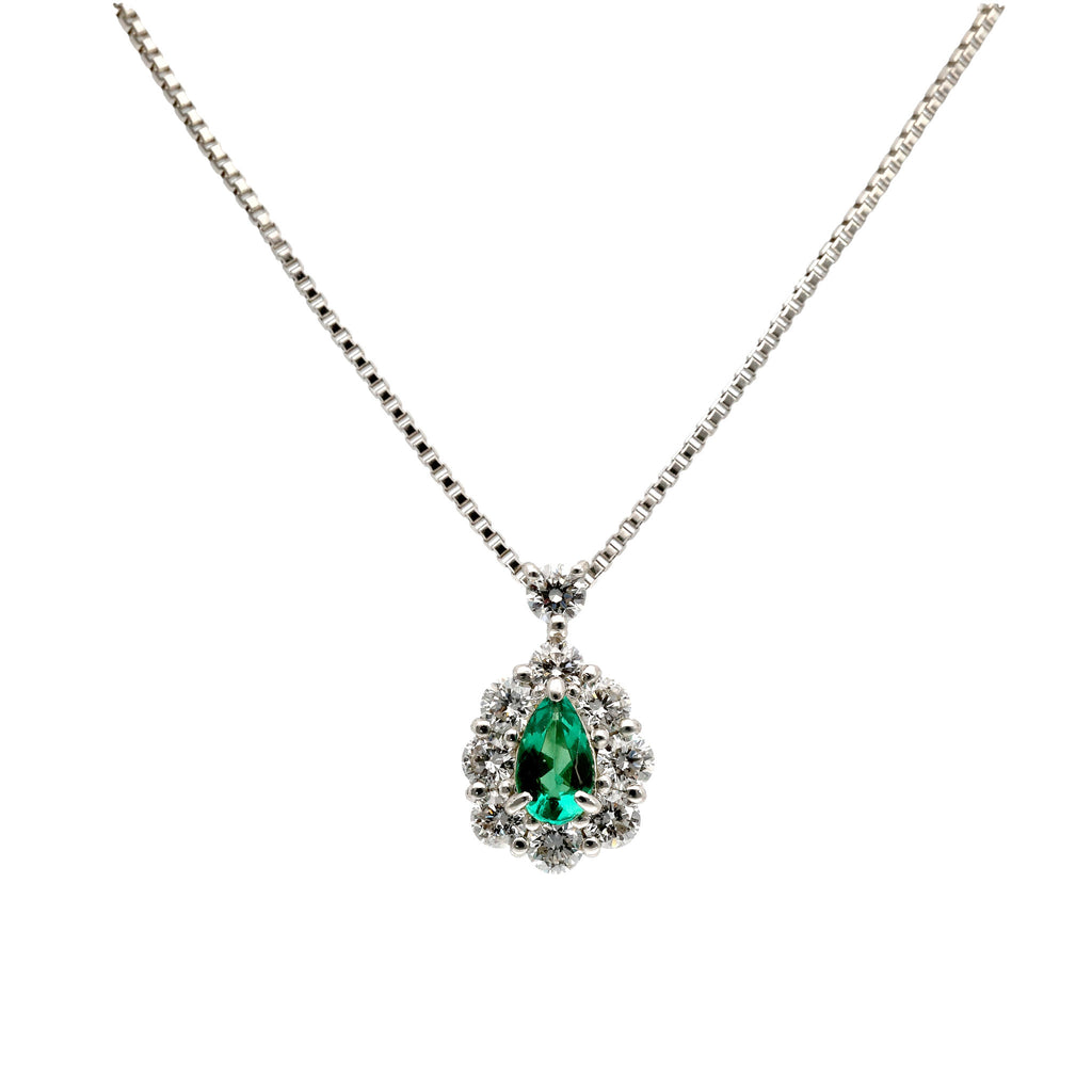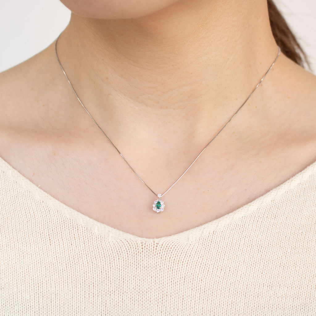 ペアシェイプに整えたグリーンアウイナイトをメレダイヤでぐるりと取り巻いたネックレスです。