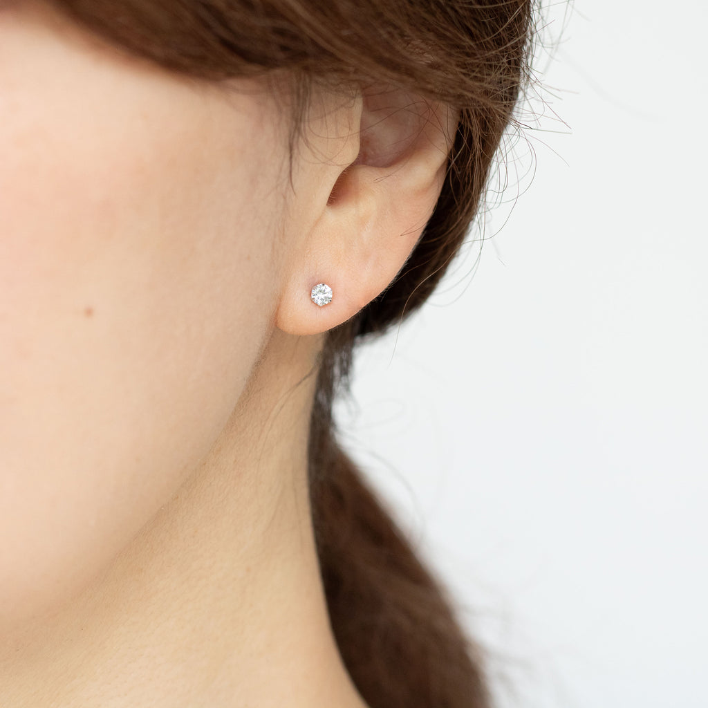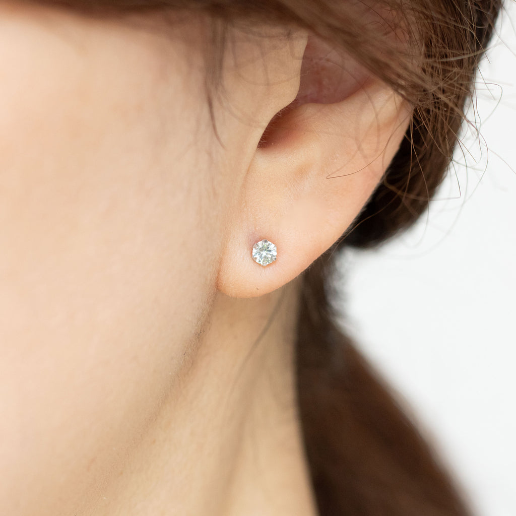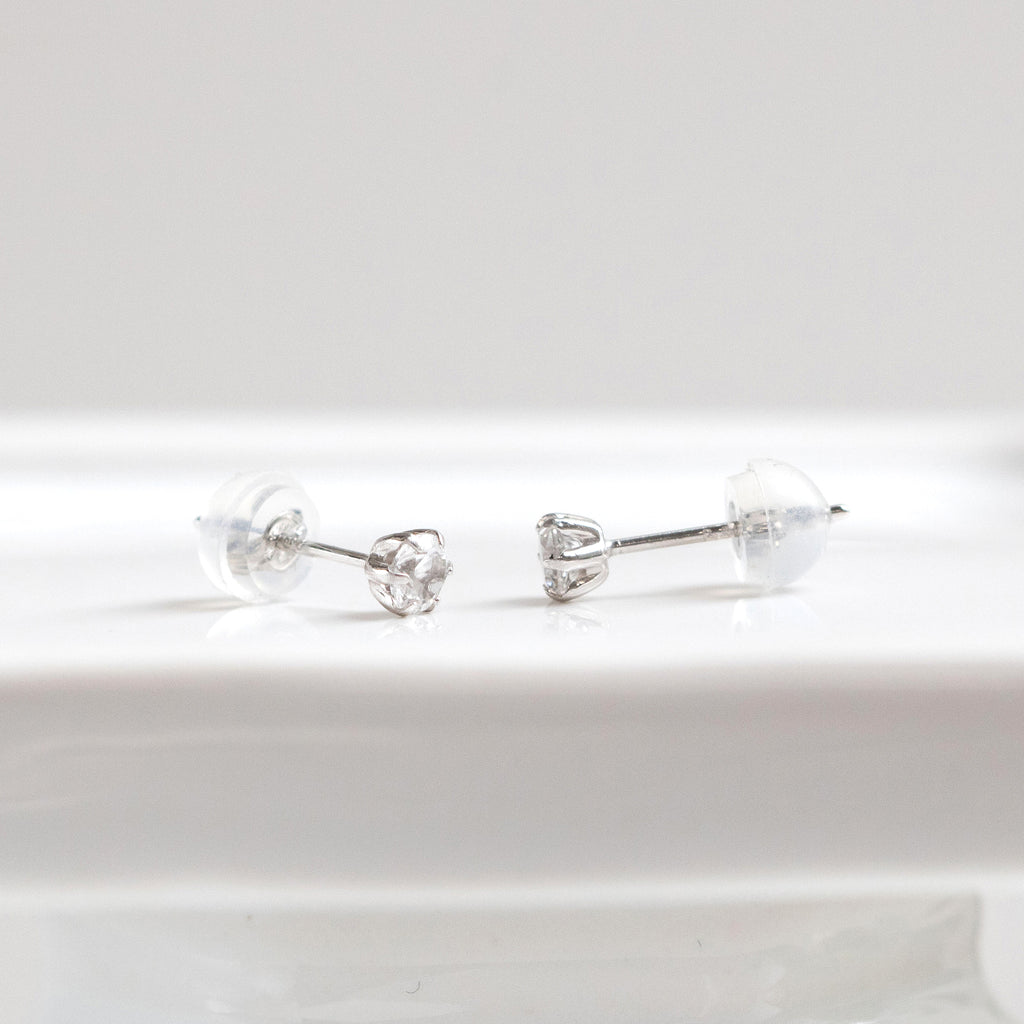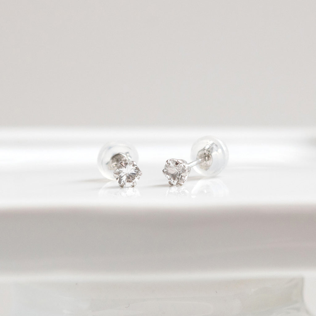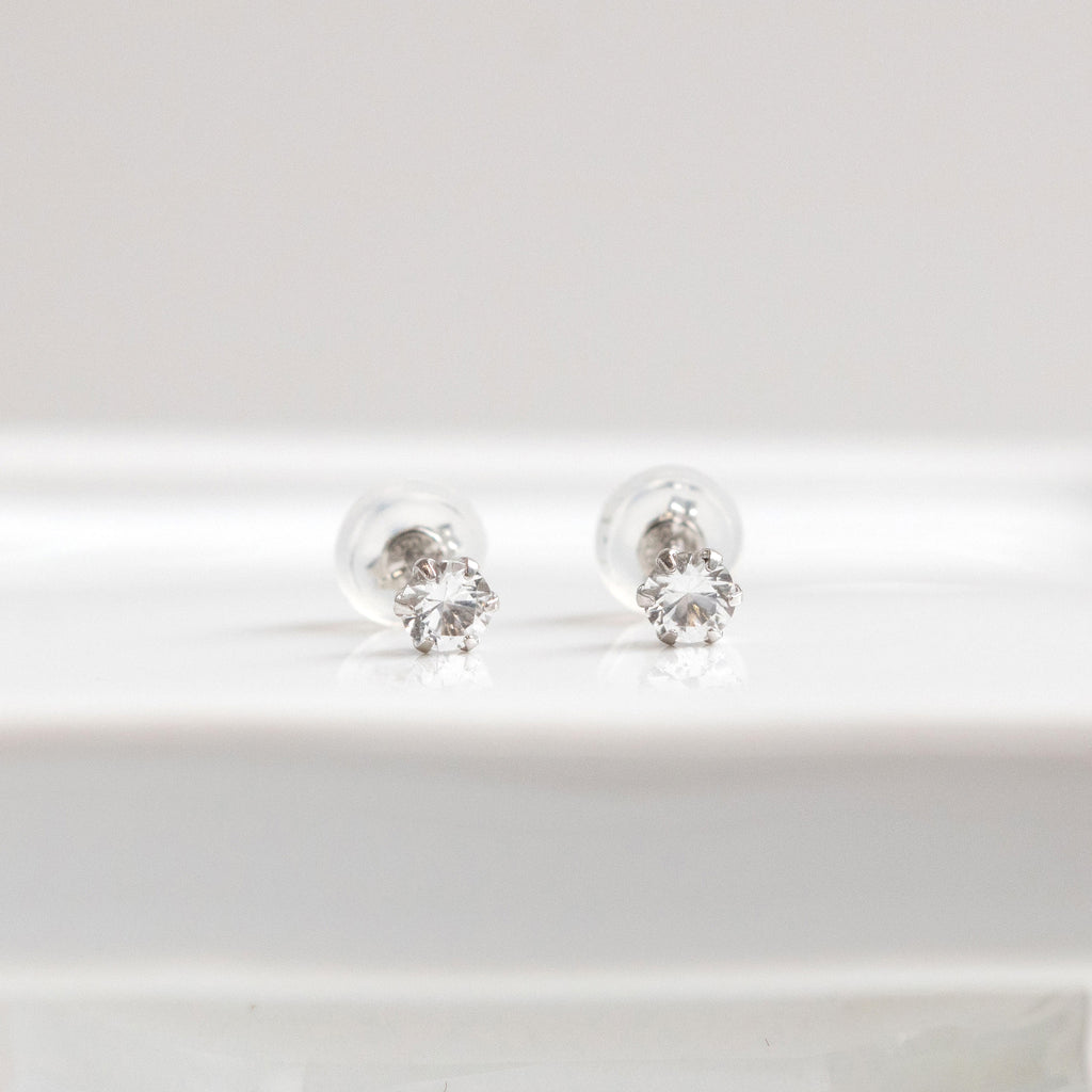 ラウンドカットにしたフェナカイトをプラチナ製の枠に6本の爪でセットした、シンプルなスタッドタイプのデザインです。