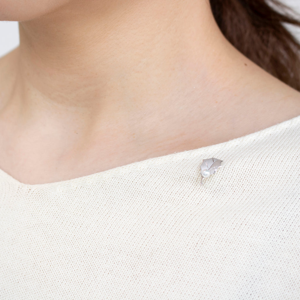 ワンポイントに留めた3.5mmのアコヤのベビーパールが上品さをプラスしています。