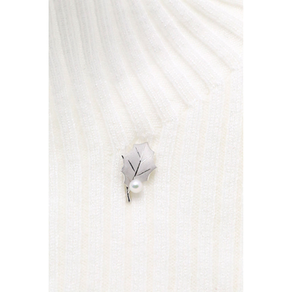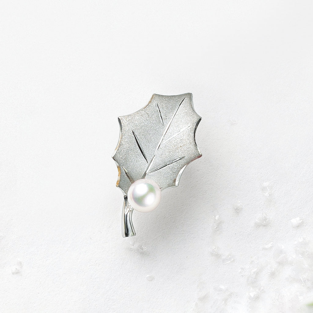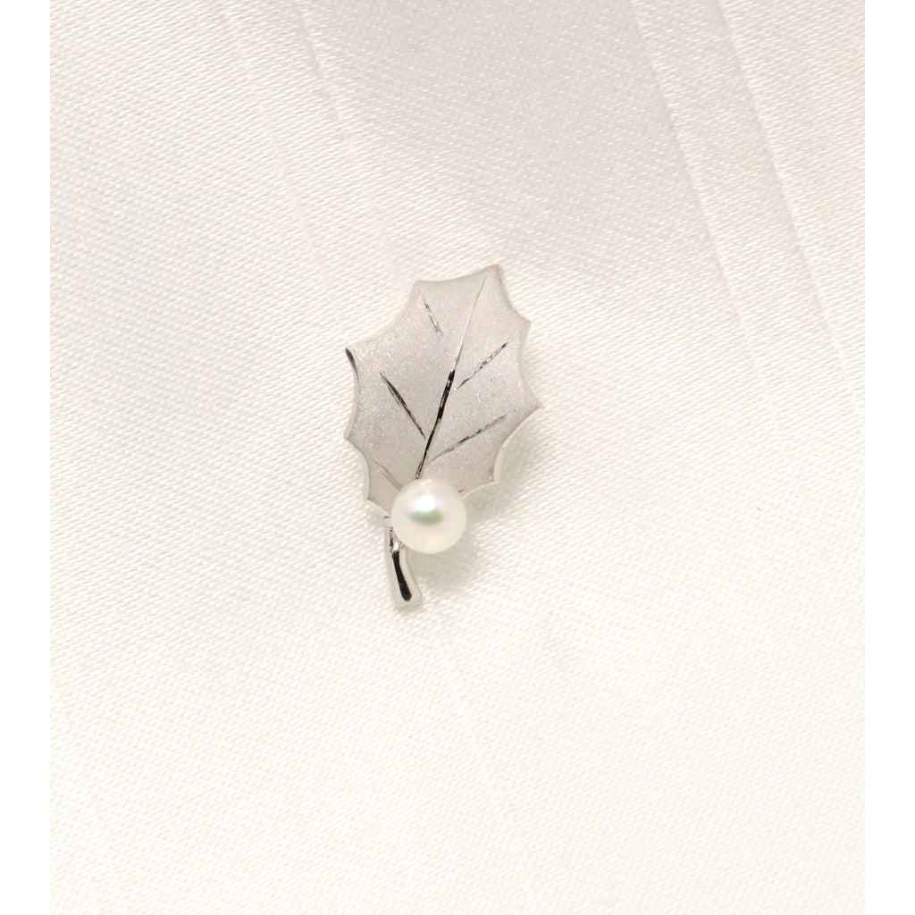 【 プラチナ製「ヒイラギモチーフ」ピンブローチ 】