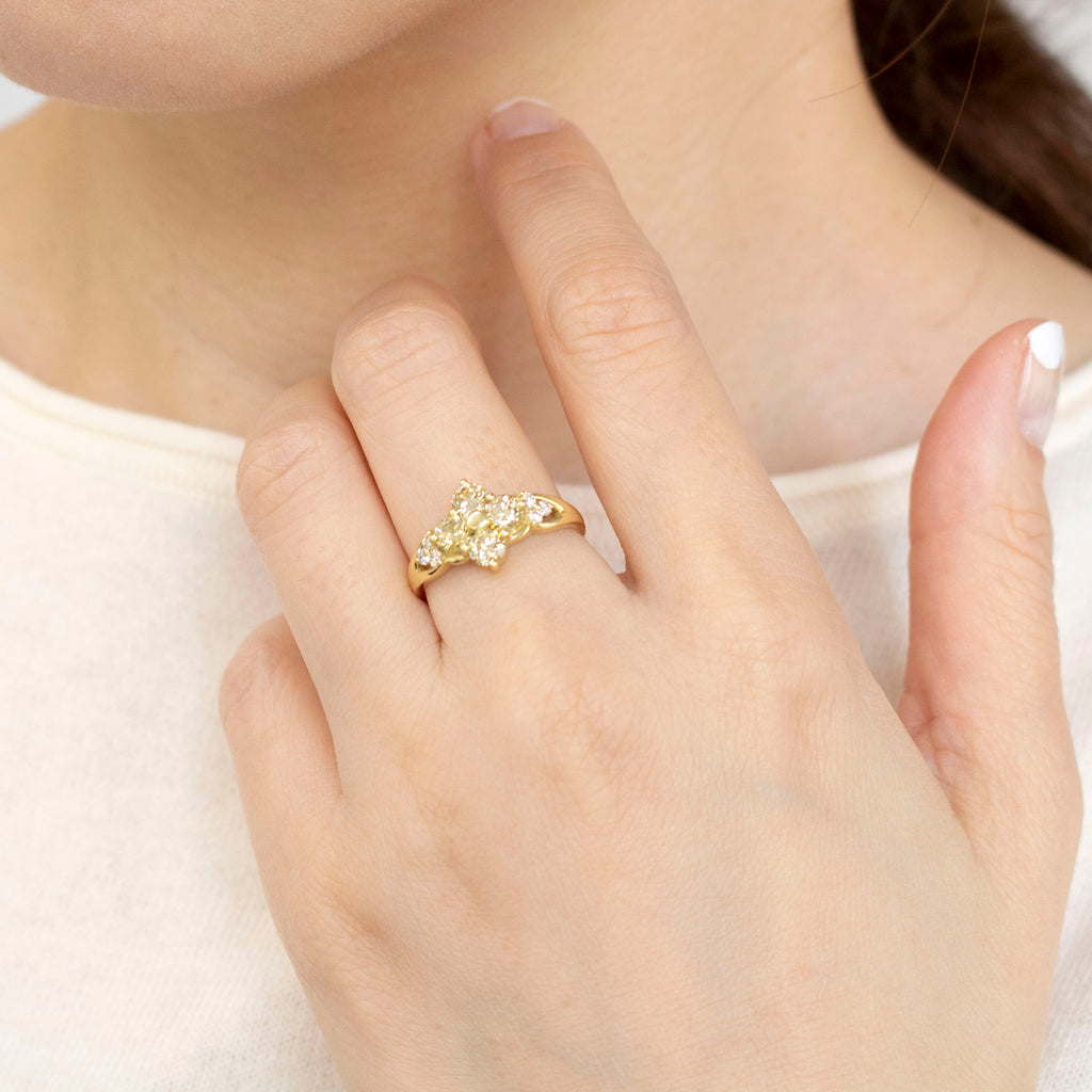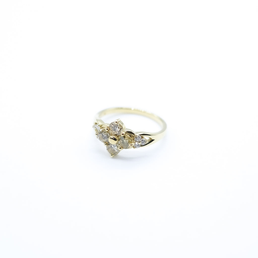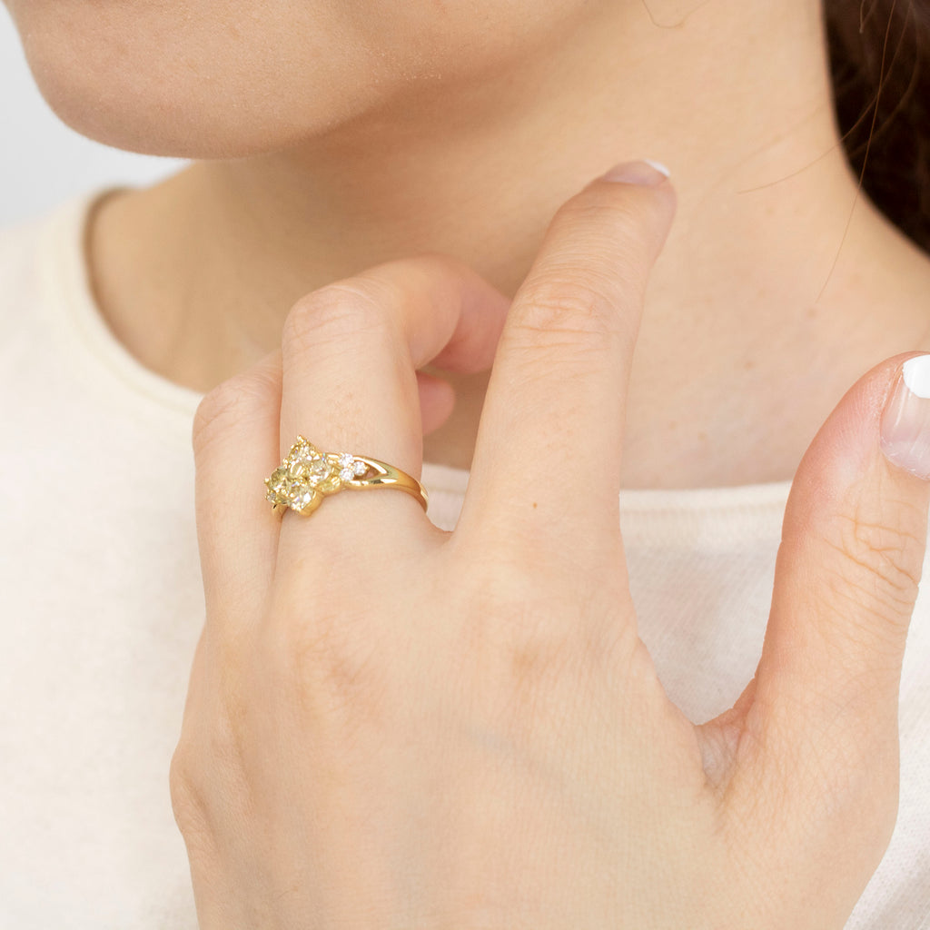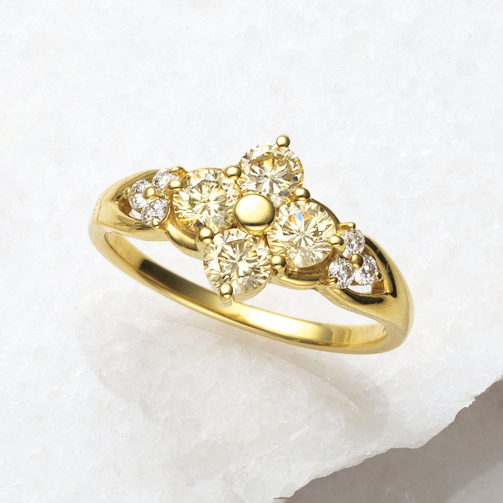 【 存在感抜群! イエロー系ダイヤフラワーモチーフリング 】