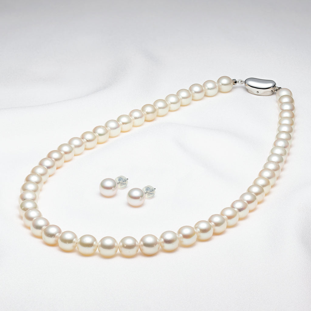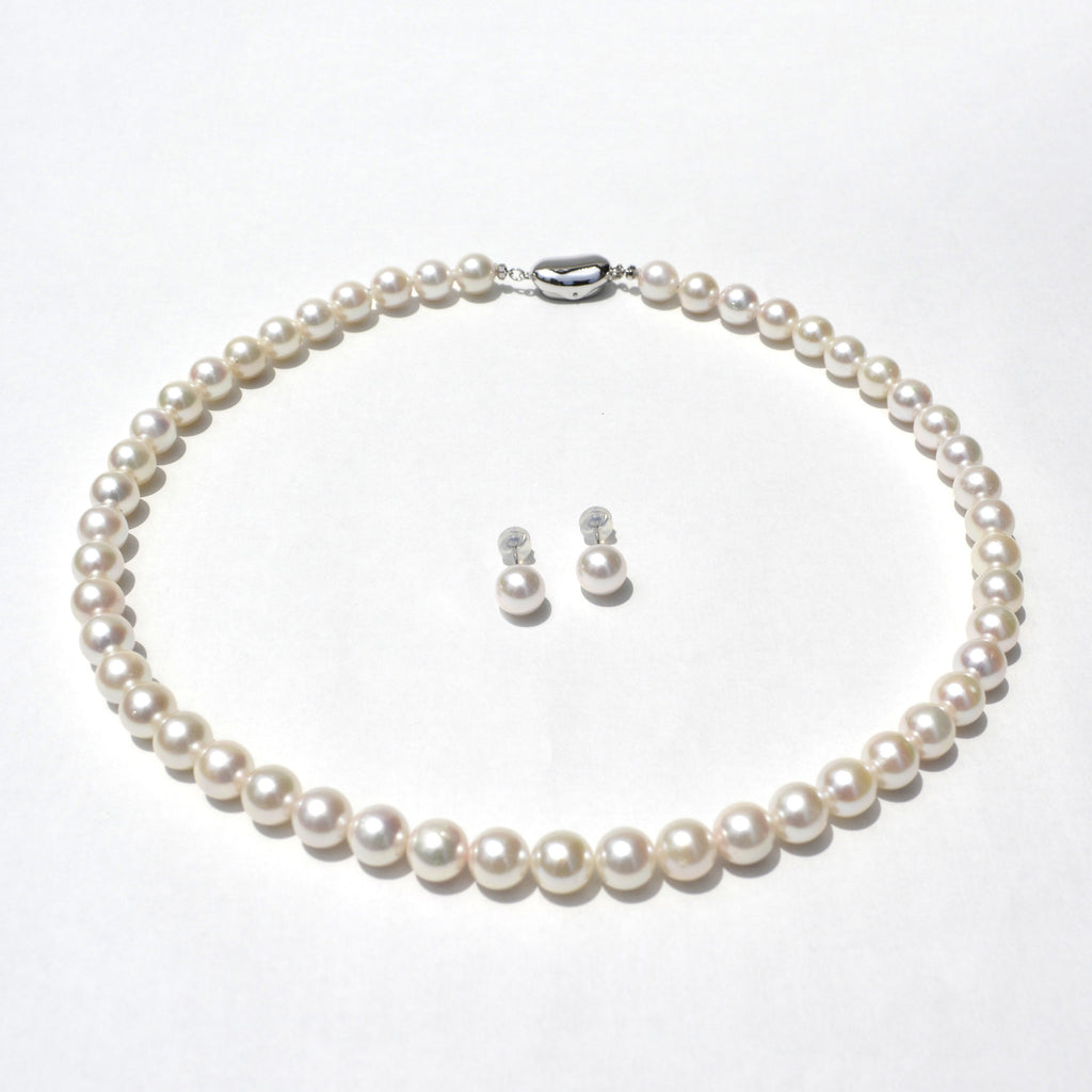 存在感抜群の大珠8mmのアコヤパールを使ったネックレスとピアスのセットです。