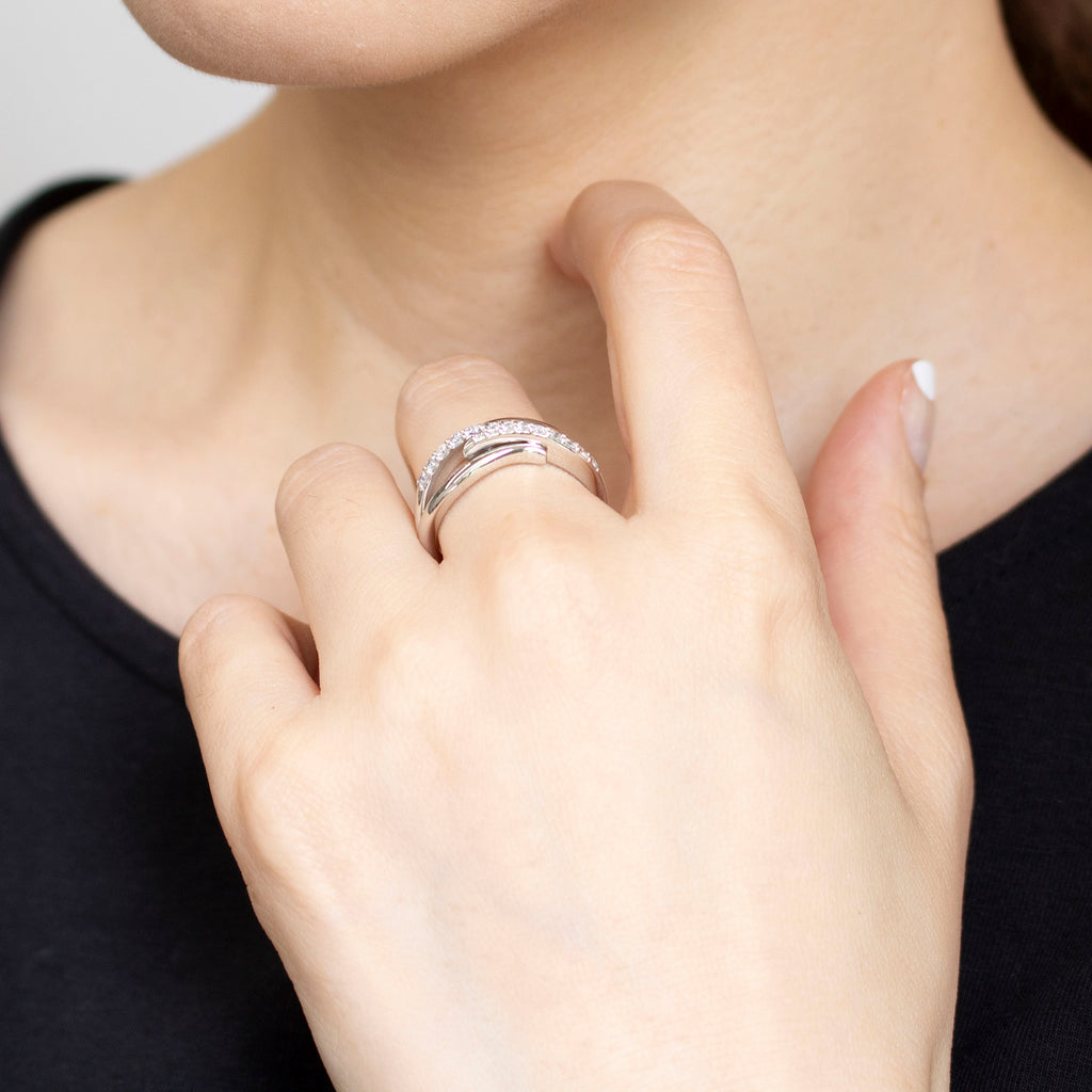 アームが動く特殊構造により、とっても簡単にサイズ調整ができるリングです。