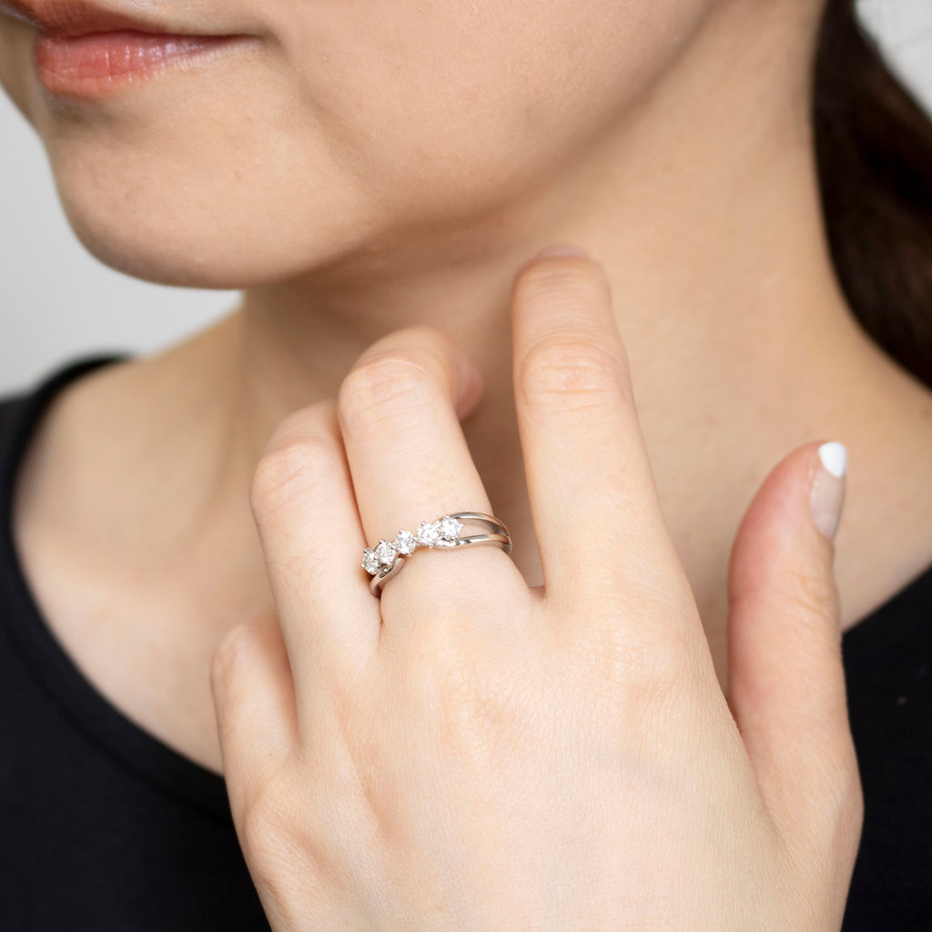大きめサイズのメレダイヤが5石、横一列に並んだデザイン。