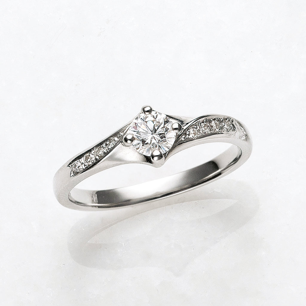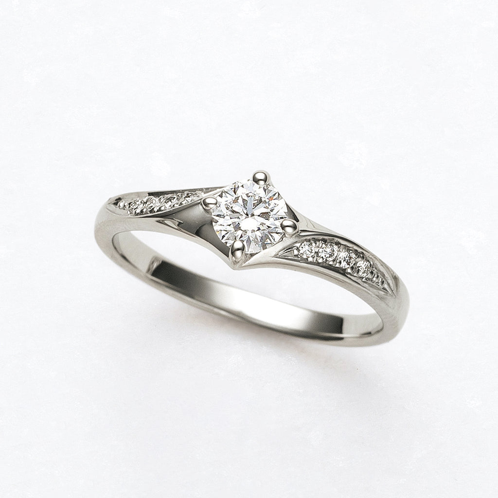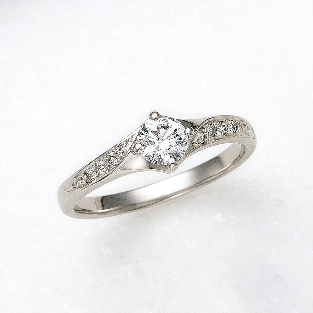 4本の爪でセットしたダイヤを、ひねりを加えたようなデザインの腕と組み合わせました。