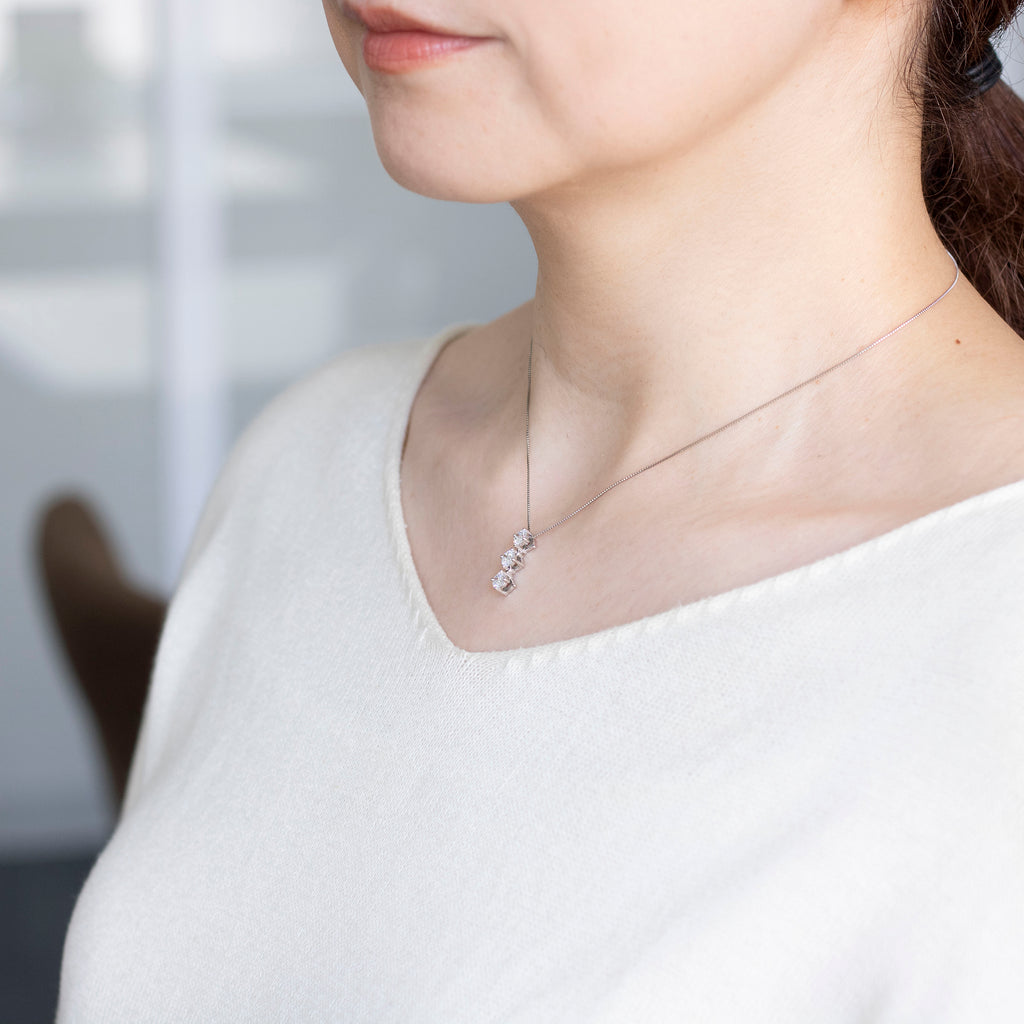 【 3石合計0.75ct Dカラー ダイヤ 2WAYネックレス 】