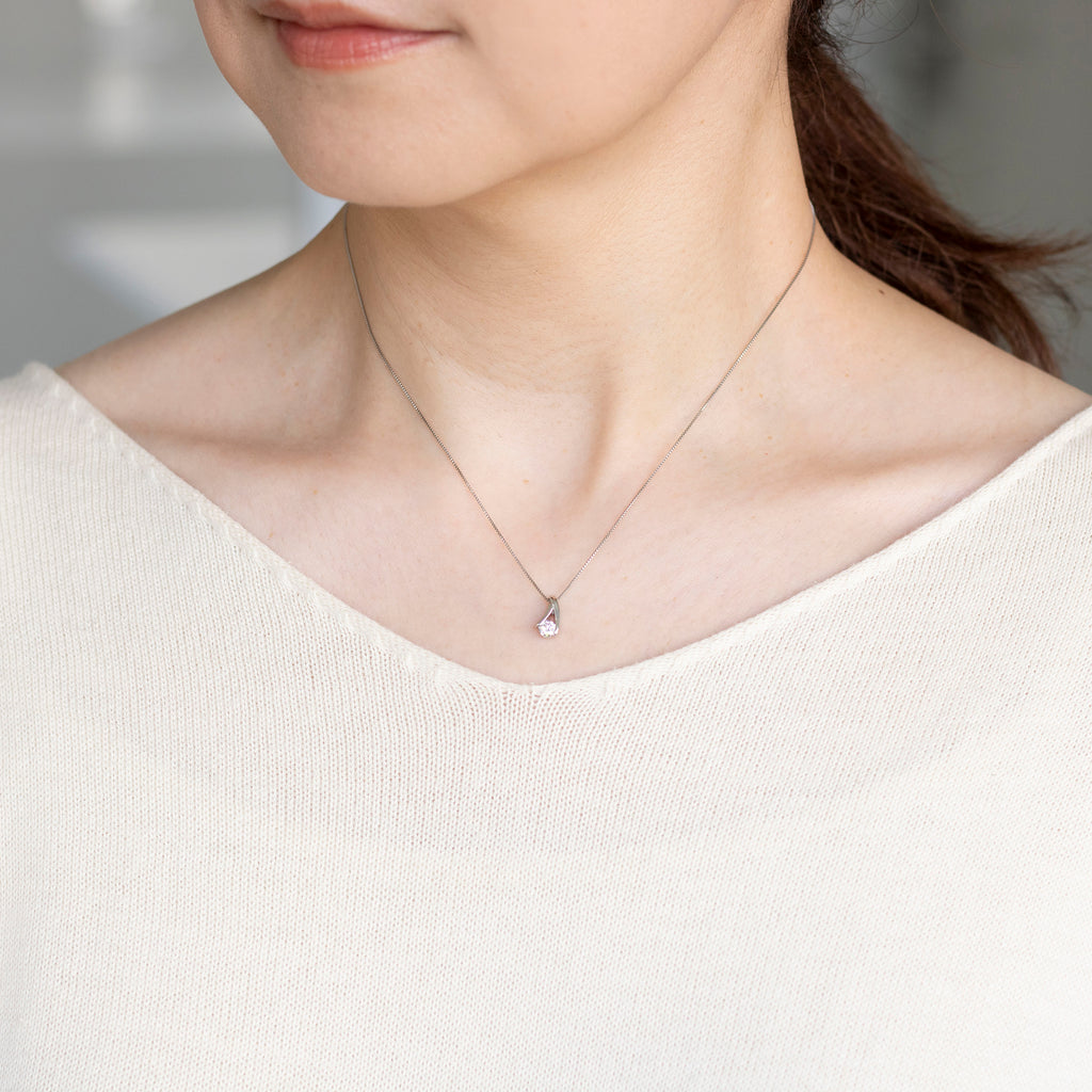 ペンダントトップもチェーンも高級感のあるプラチナ製です。カットは最高グレードのエクセレントカットで、ダイヤらしい強く眩い輝きをお楽しみいただけます。