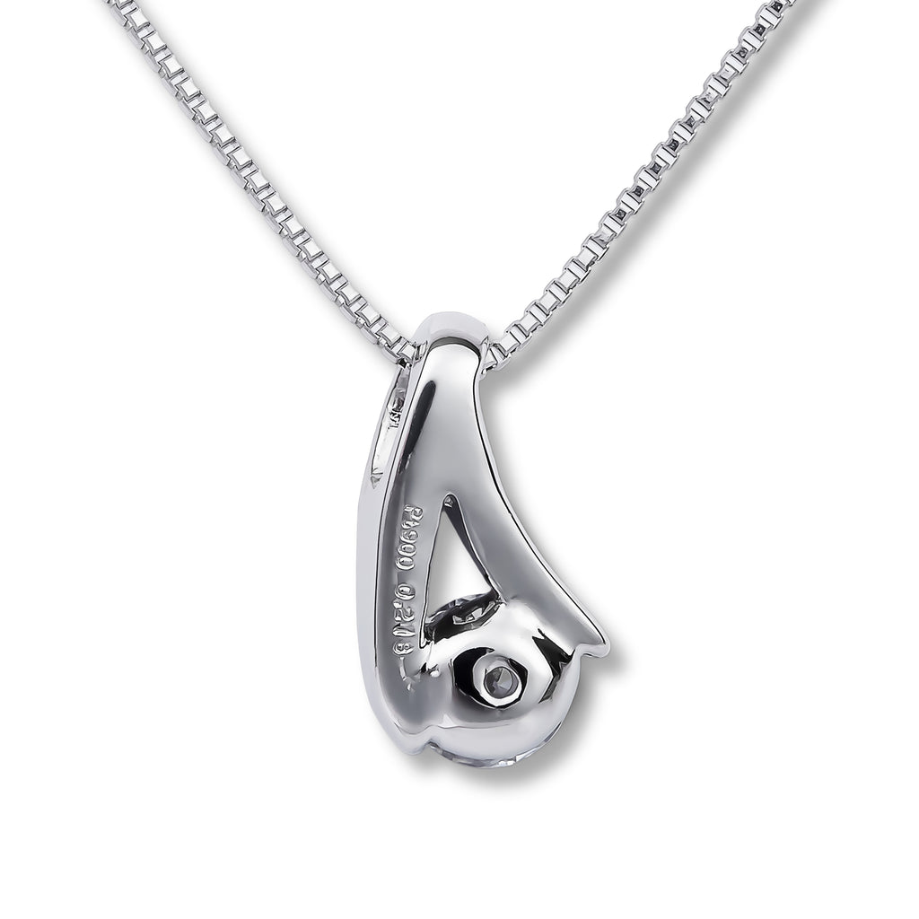 大変稀少な完全無色のDカラーのダイヤを、プラチナ製の枠で挟み込むように留めた人気デザインのネックレスです。
