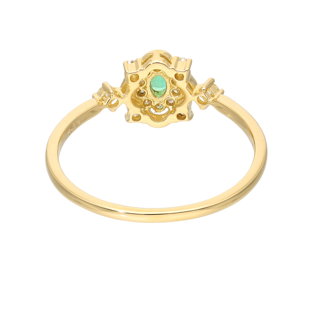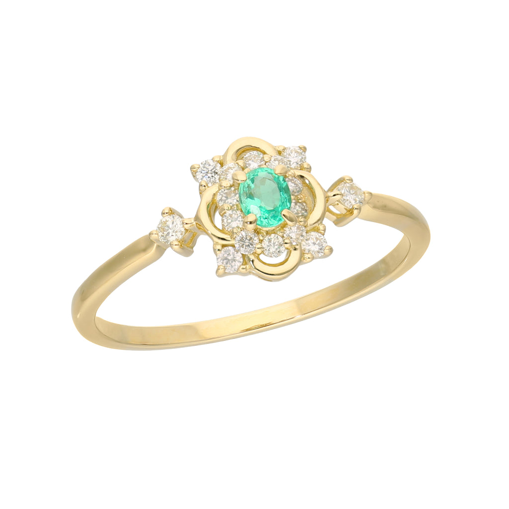 落ち着いた印象のオーバルシェイプのエメラルドを、エメラルドのグリーンが映える18金イエローゴールドにセットしました。