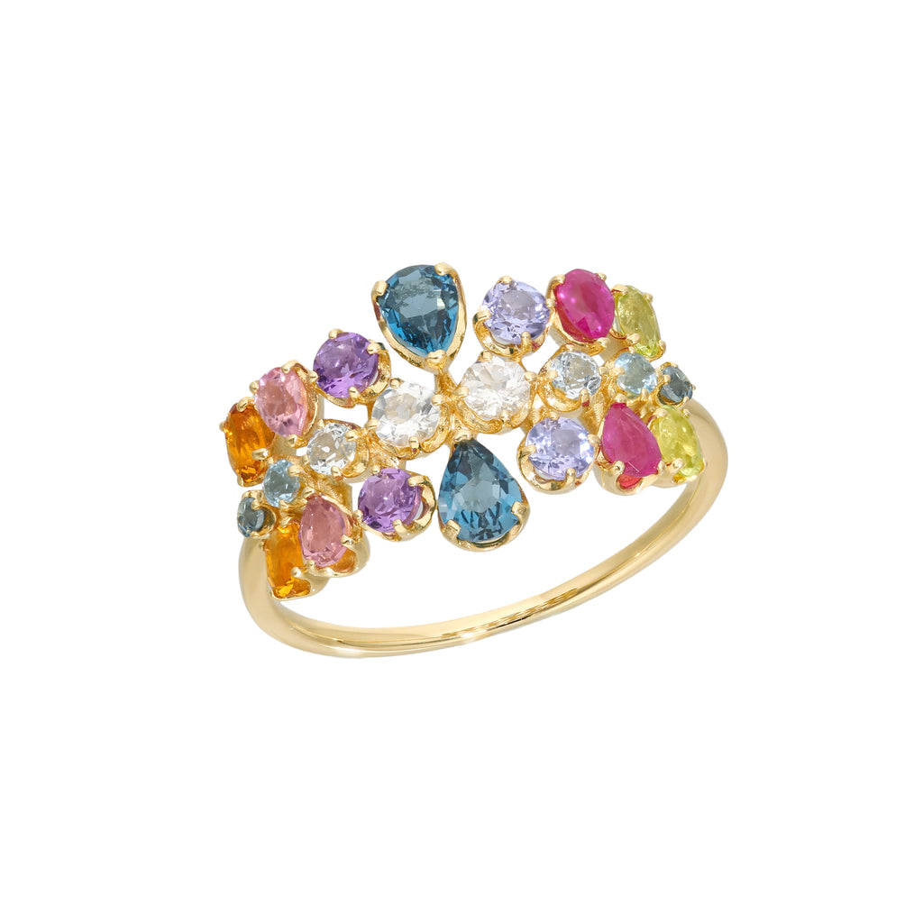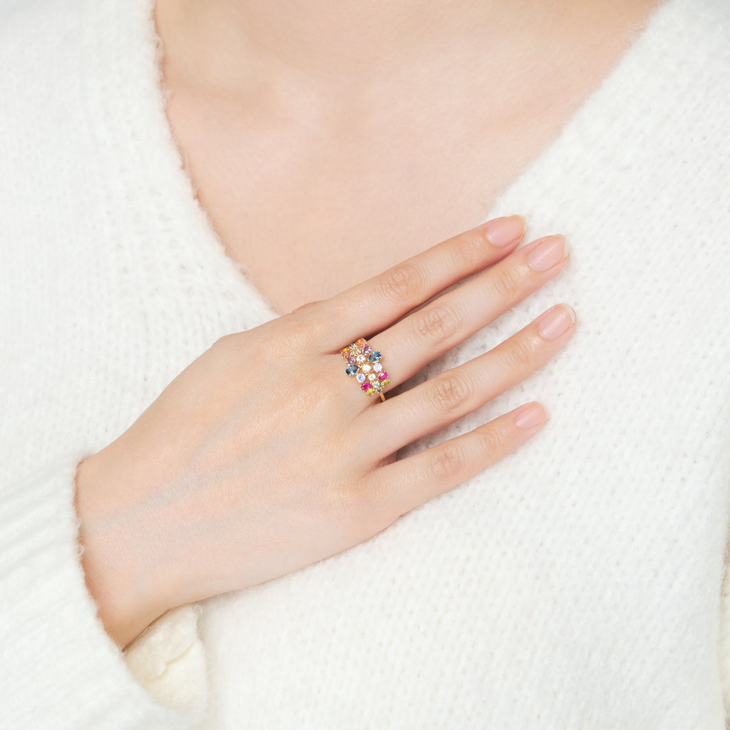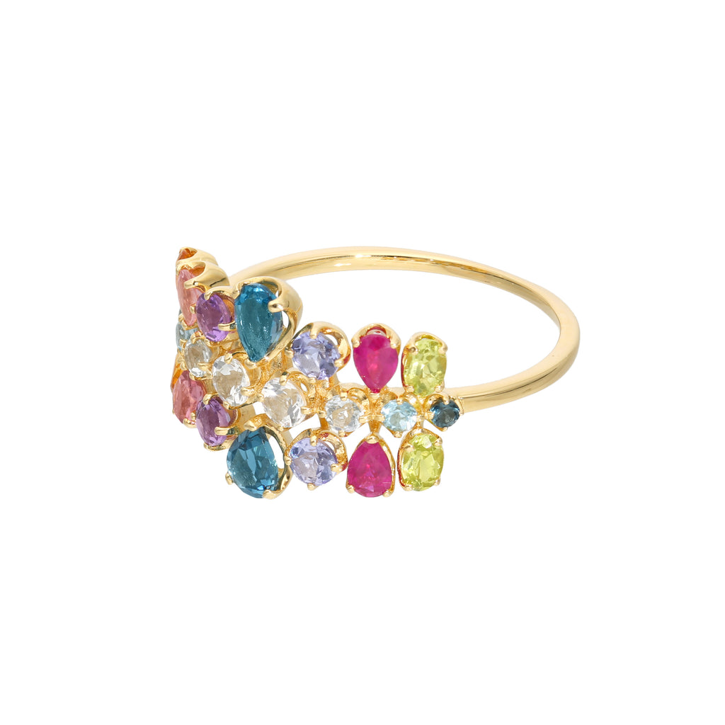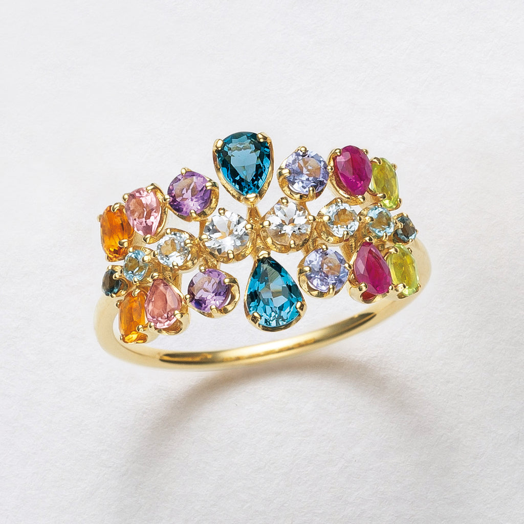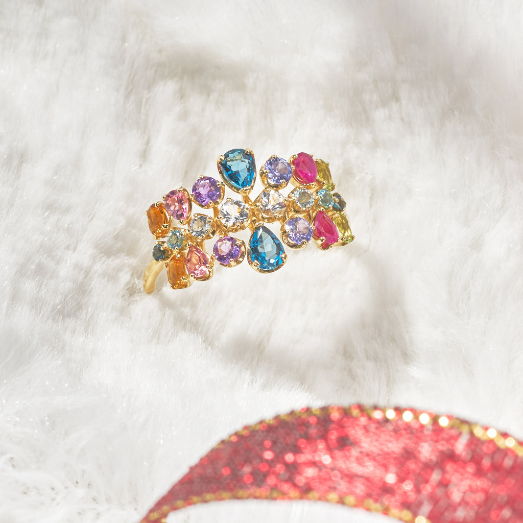 まるで王冠のようなデザインに様々なカラーストーンを絶妙なバランスで配置しました。