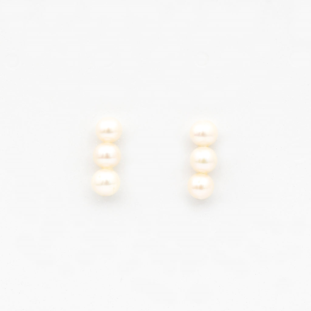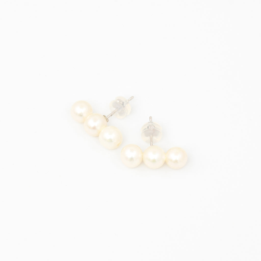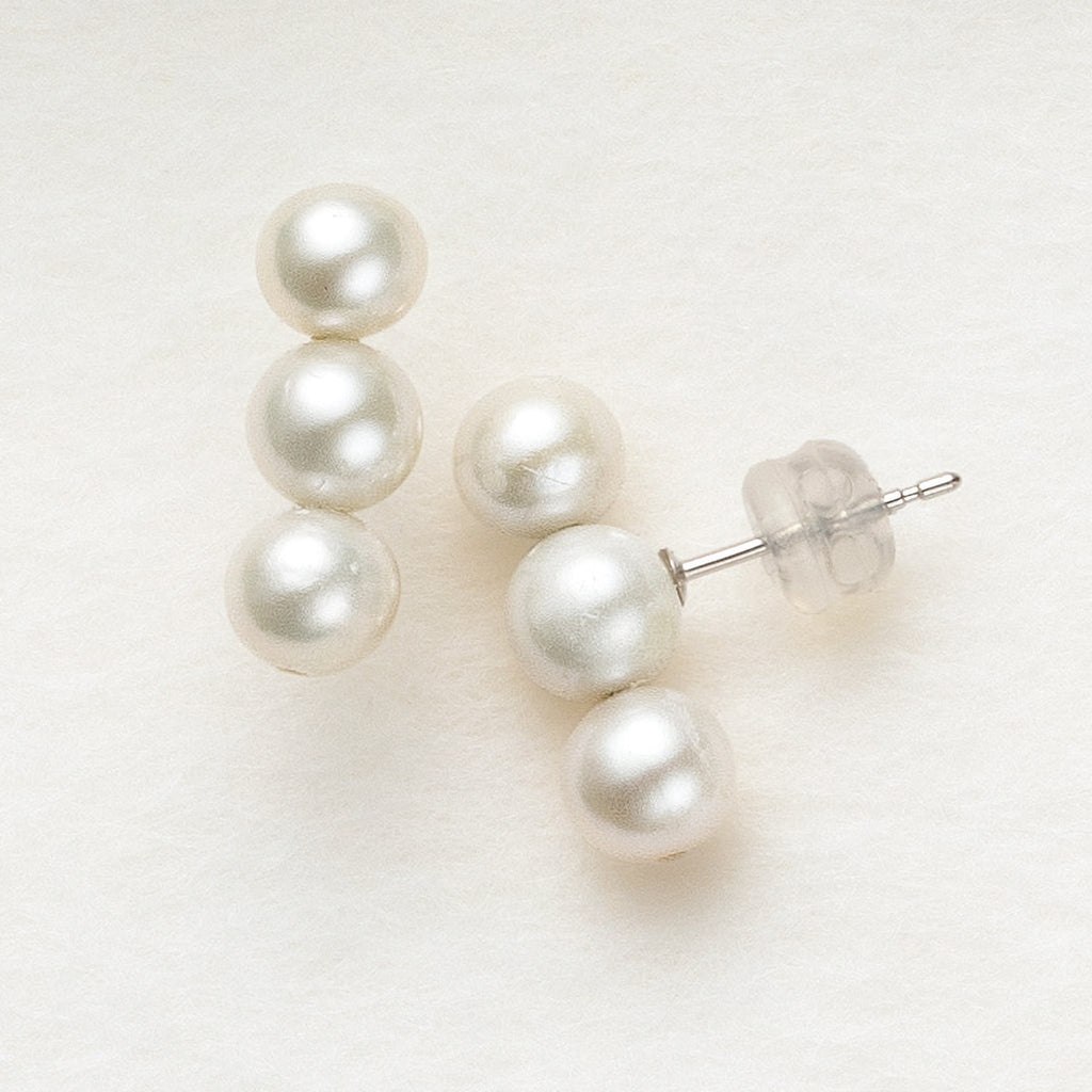 5.5mmの小粒の淡水パールを3珠並べたシンプルなデザインのピアスです。