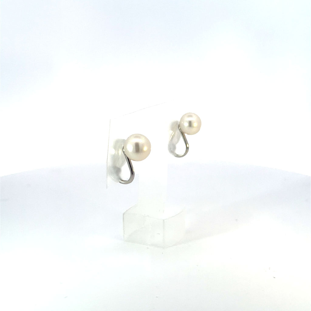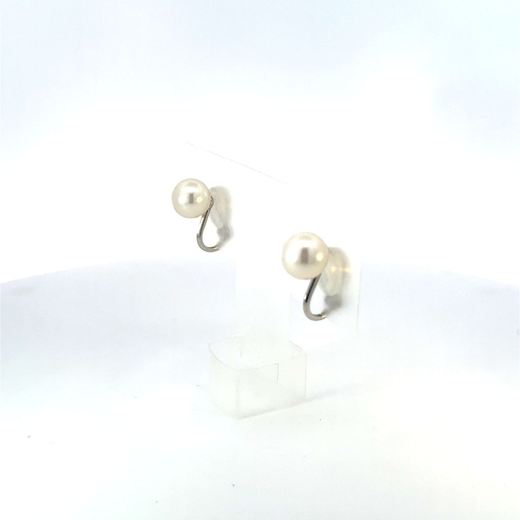 【 シルバー製 ホワイト系淡水パールイヤリング 】