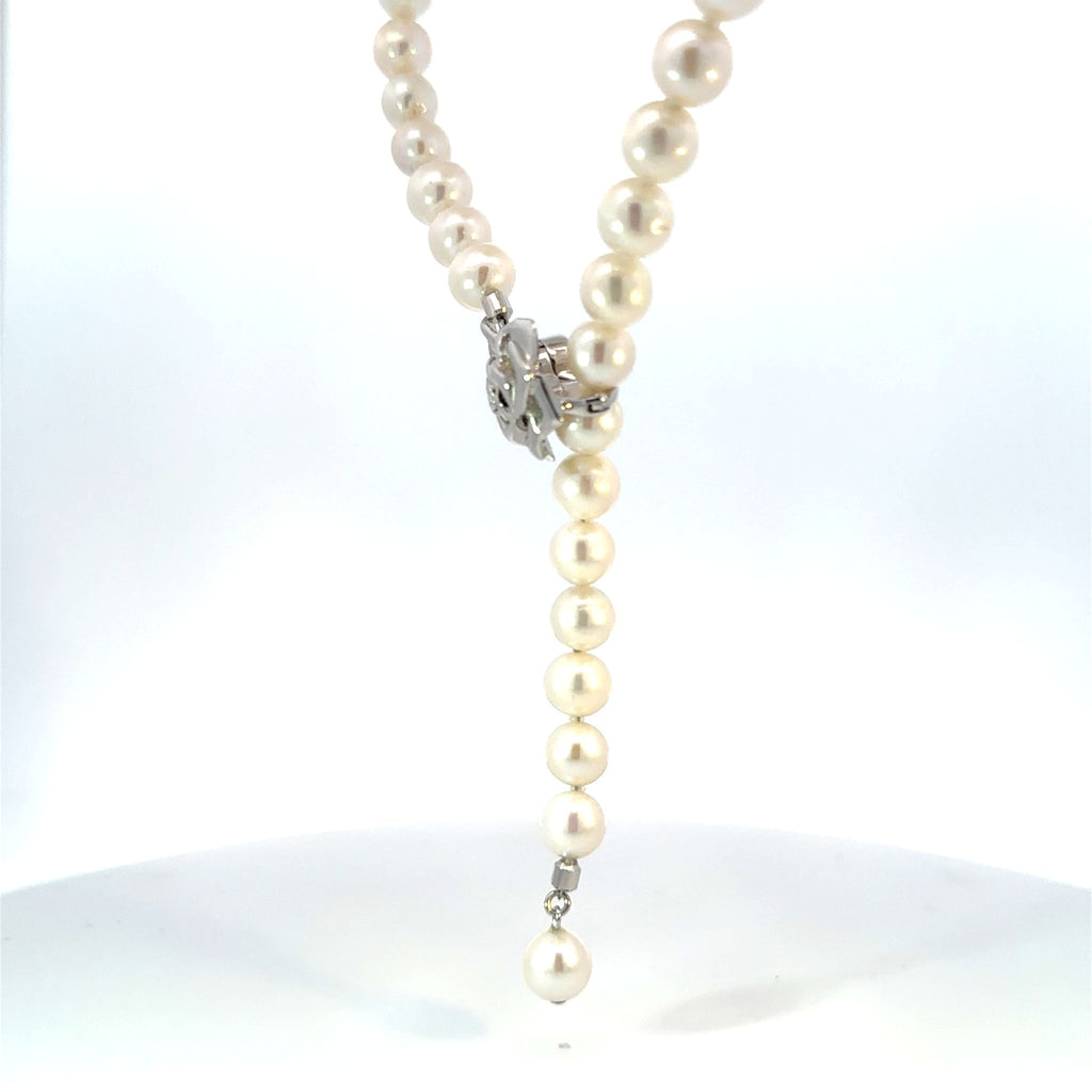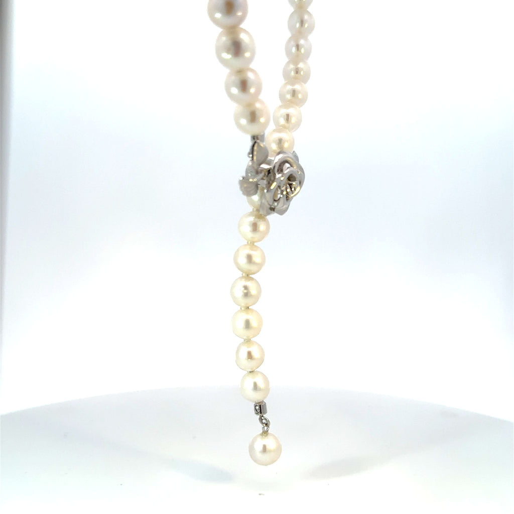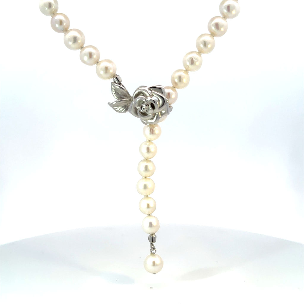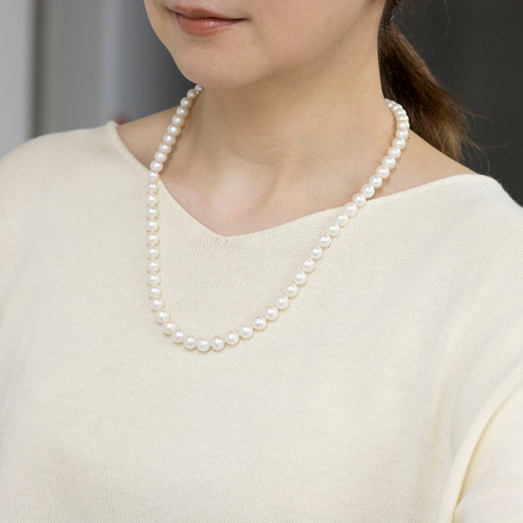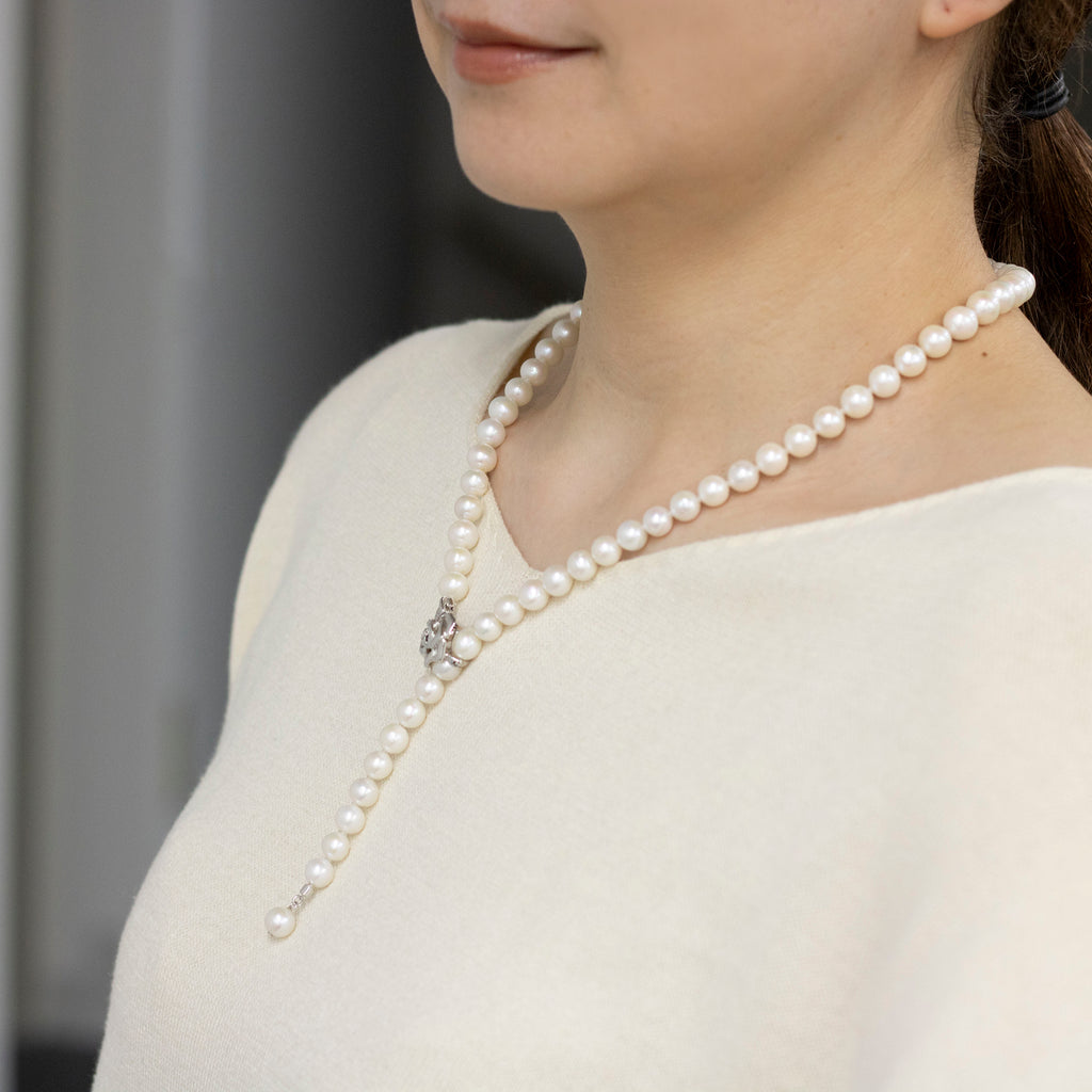 7~8mmサイズでてりのよいセミラウンド系の珠を厳選しました。全長約55cmの長さがあるのでゆったりと着けられます。
