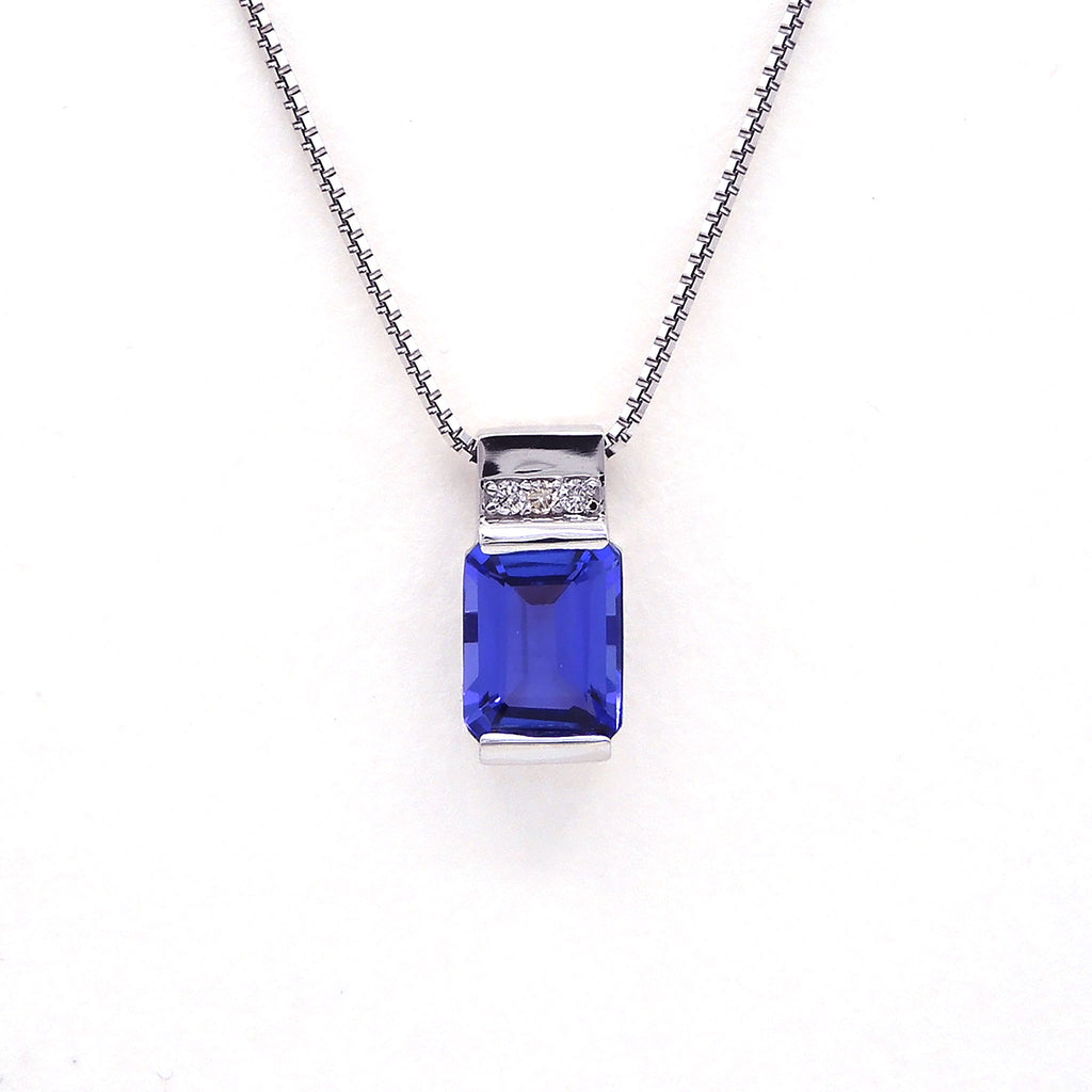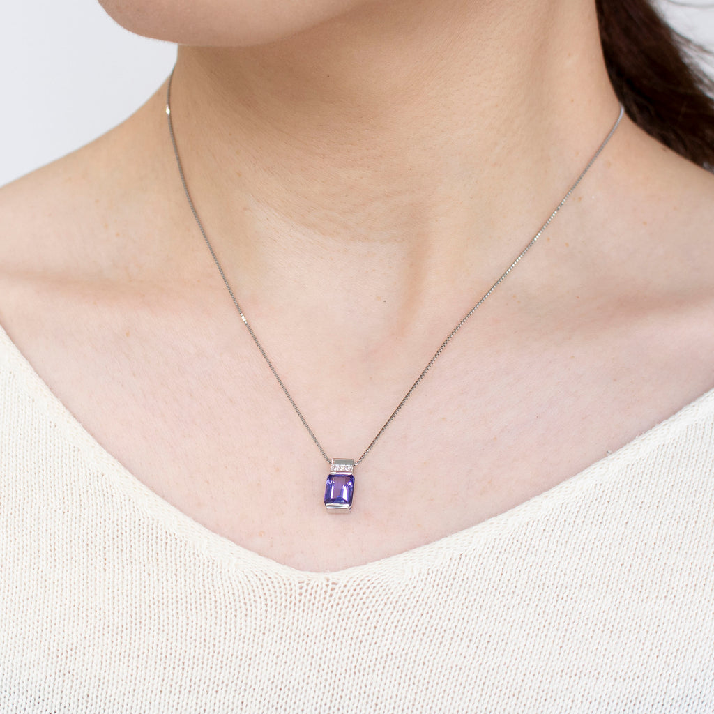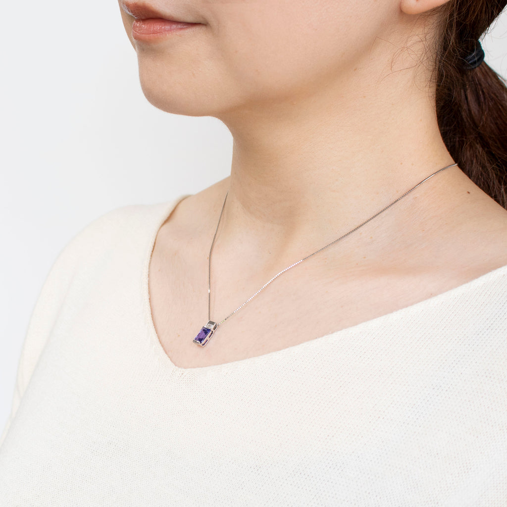 気品漂うエメラルドカットに整えられたタンザナイトを人気デザインのネックレスにセットしました。タンザナイトの美しい青紫色によく合うプラチナ製です。