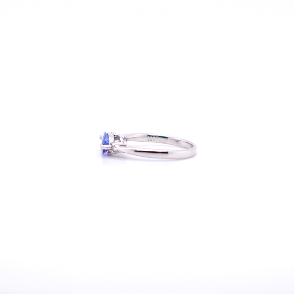 深い青紫色がきれいなタンザナイトをプラチナの枠にセットしたリングです。