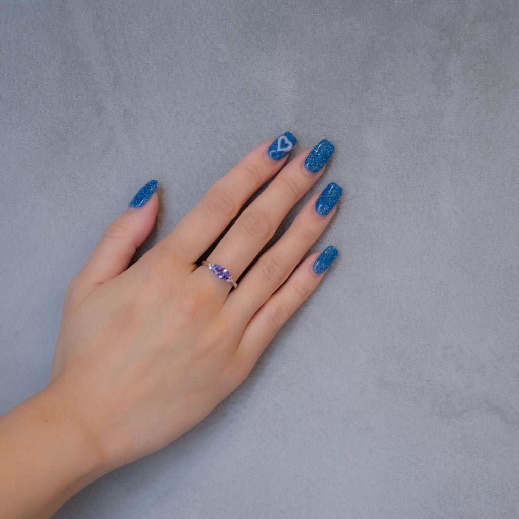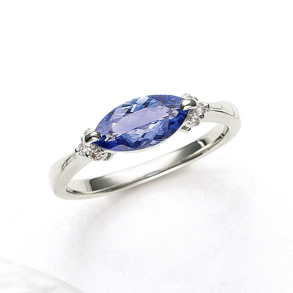 エレガントな印象のマーキスカットとタンザナイトの青紫色がよくマッチしています。