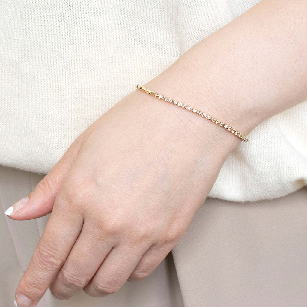 合計1ctのダイヤを一列にセットしたテニスブレスレット部分はキラキラとゴージャスな輝きを放って目を楽しませてくれます。