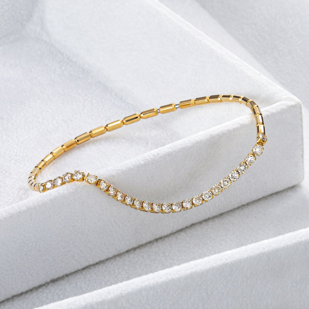 【 ラクに着けられる! ストレッチタイプ 18金イエローゴールド製ダイヤブレスレット 】