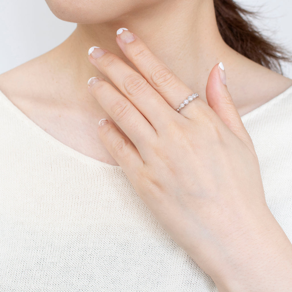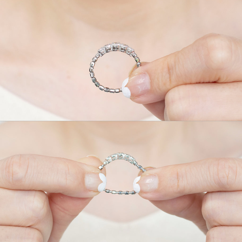 一見すると普通のリングのようなデザインですが、軽くて伸縮するのでラクな着け心地でリングをお楽しみいただけます。