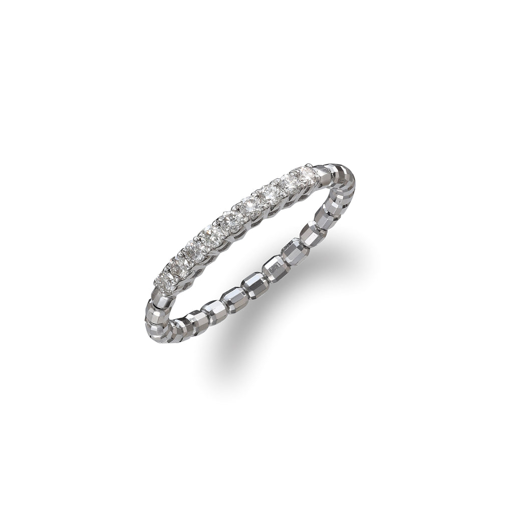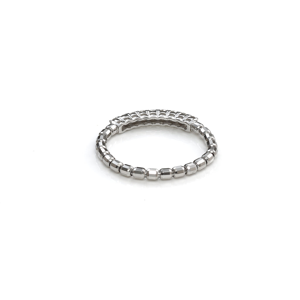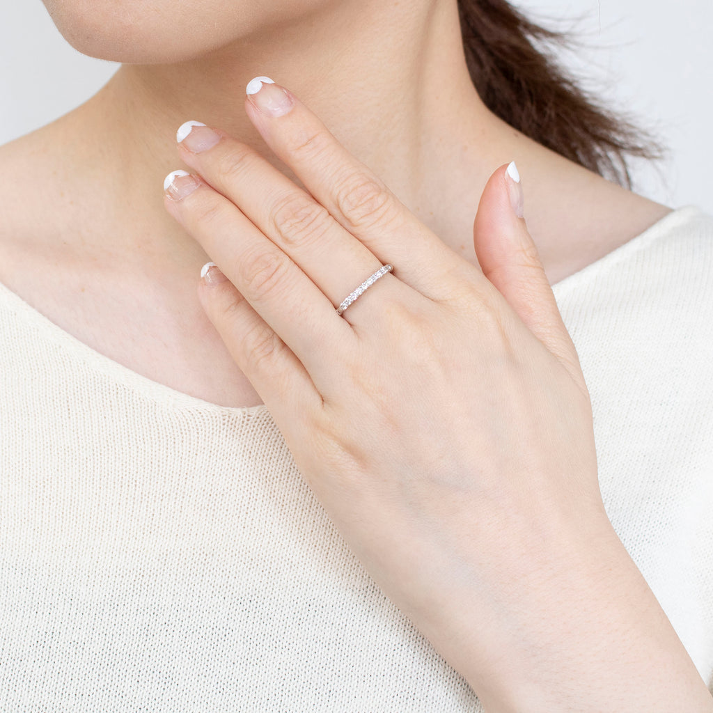一見すると普通のハーフエタニティリングのようなデザインですが、軽くて伸縮するのでラクな着け心地でリングをお楽しみいただけます。