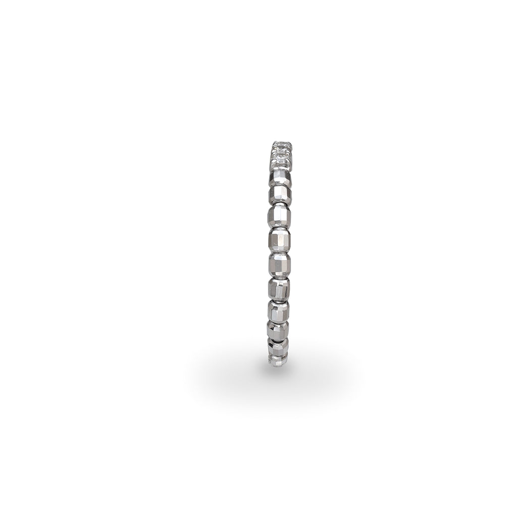 キラキラと輝くプラチナ製のカットボールを連ねたリングの中央に同じサイズのメレダイヤを9石並べて留めました。