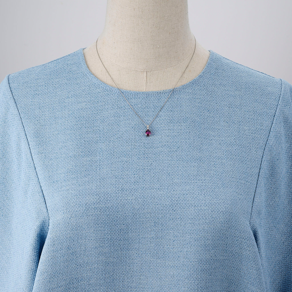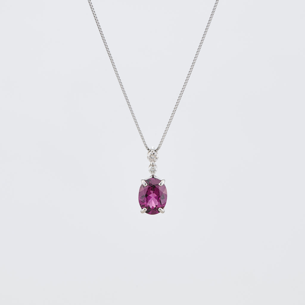 明るい紫みを帯びた色合いが美しいグレープカラーのガーネットをシンプルなデザインのネックレスに仕立てました。