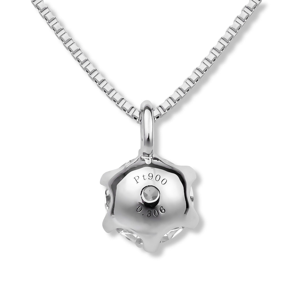 グレーディングレポート付きの確かな品質の0.3ctのダイヤを、高級感のあるプラチナ製の枠にセット。ダイヤをプラチナ製の小さな爪で留める6点留めのデザインです。