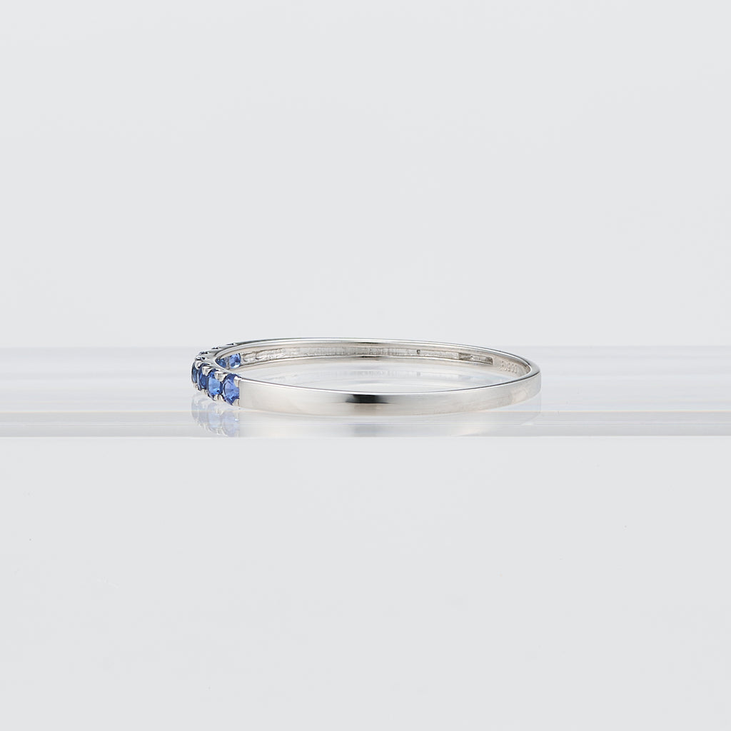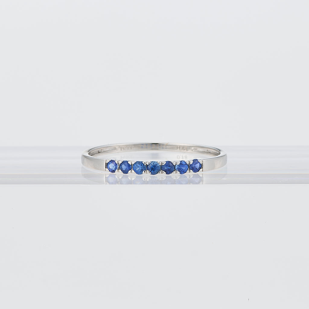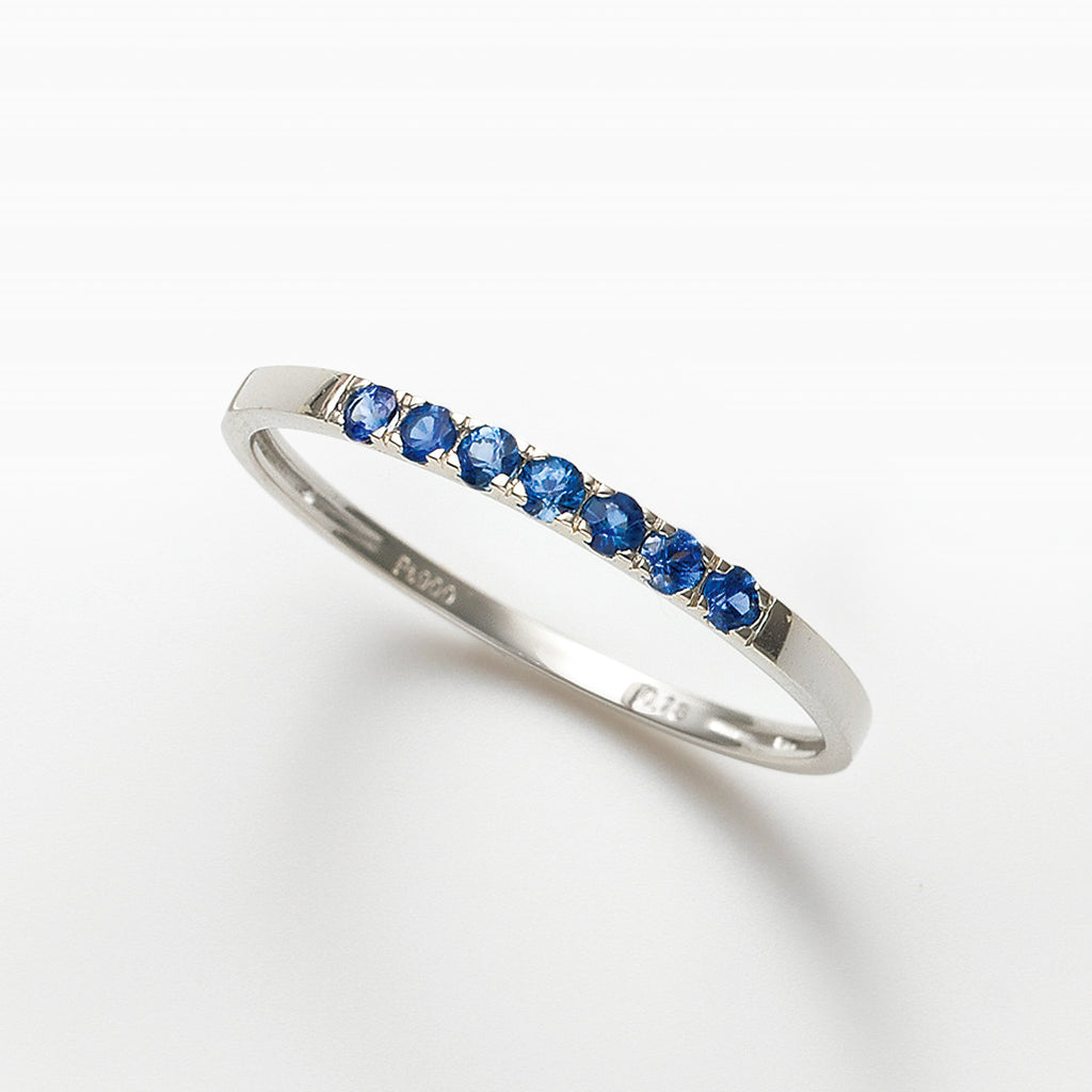 小粒ながらも気品のあるブルーが美しく、キラッと輝くサファイアを厳選して、ベーシックなハーフエタニティタイプのリングを作りました。