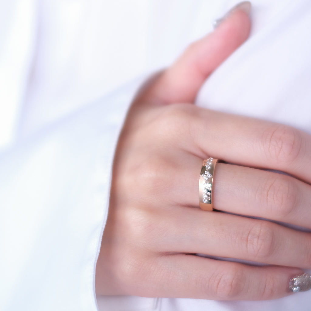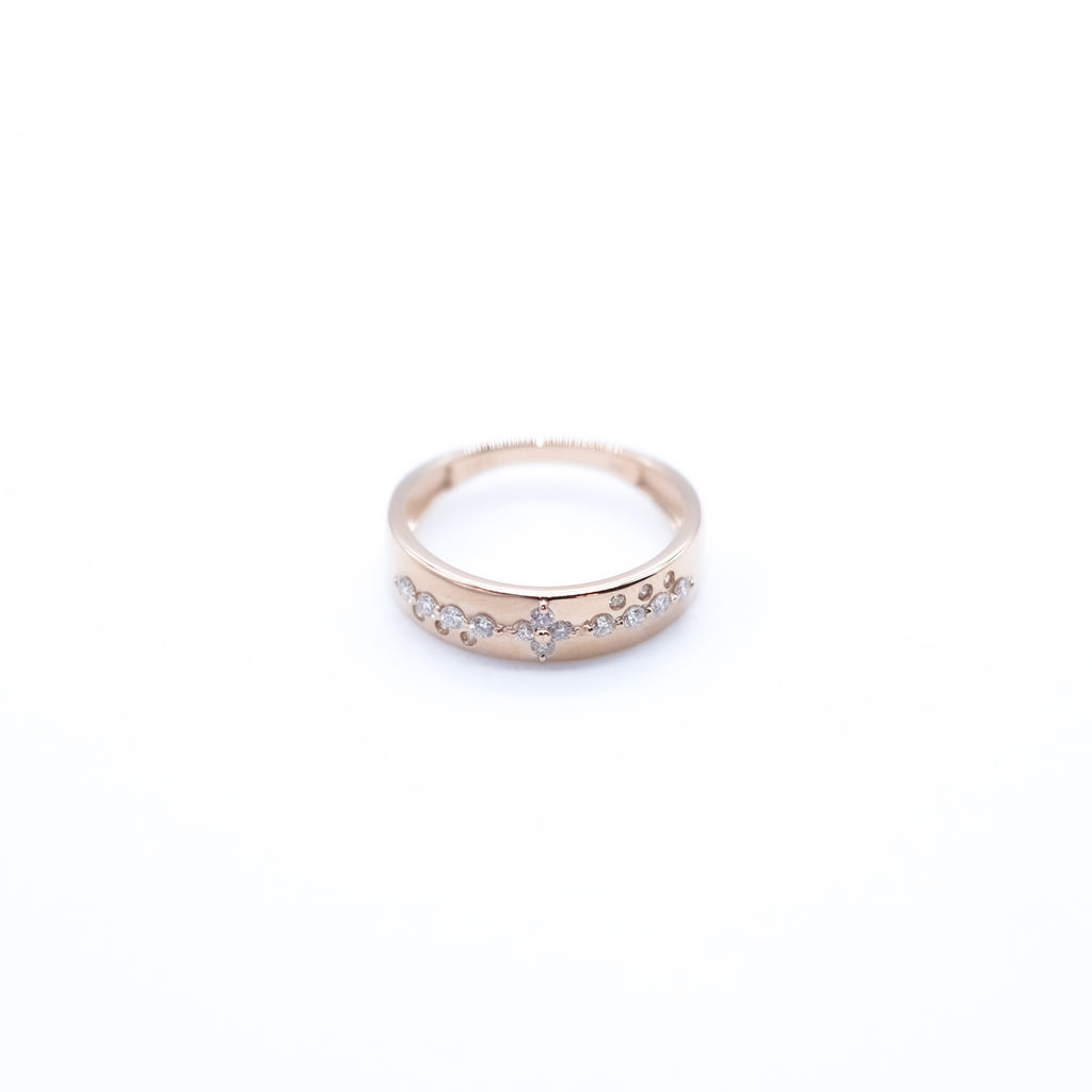 あまり高さのない平甲丸タイプのリングにメレダイヤを埋め込むようにセットしました。