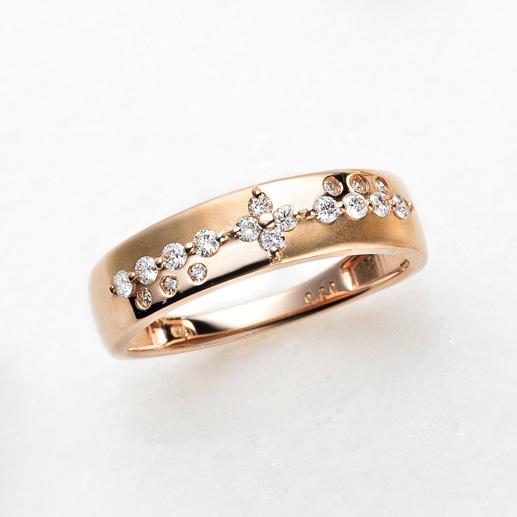 落ち着いた色が肌なじみのよい18金ピンクゴールド製のリングです。